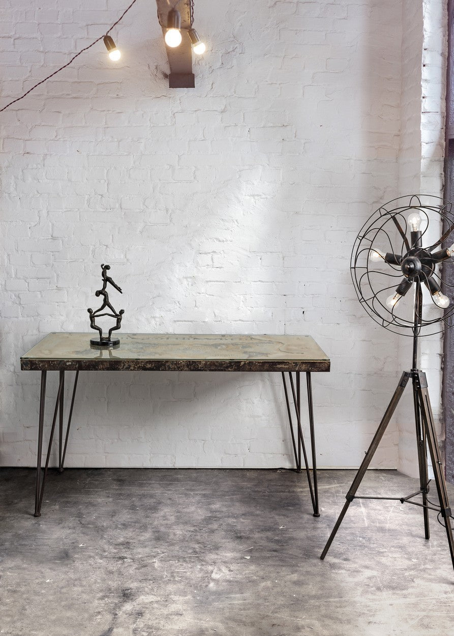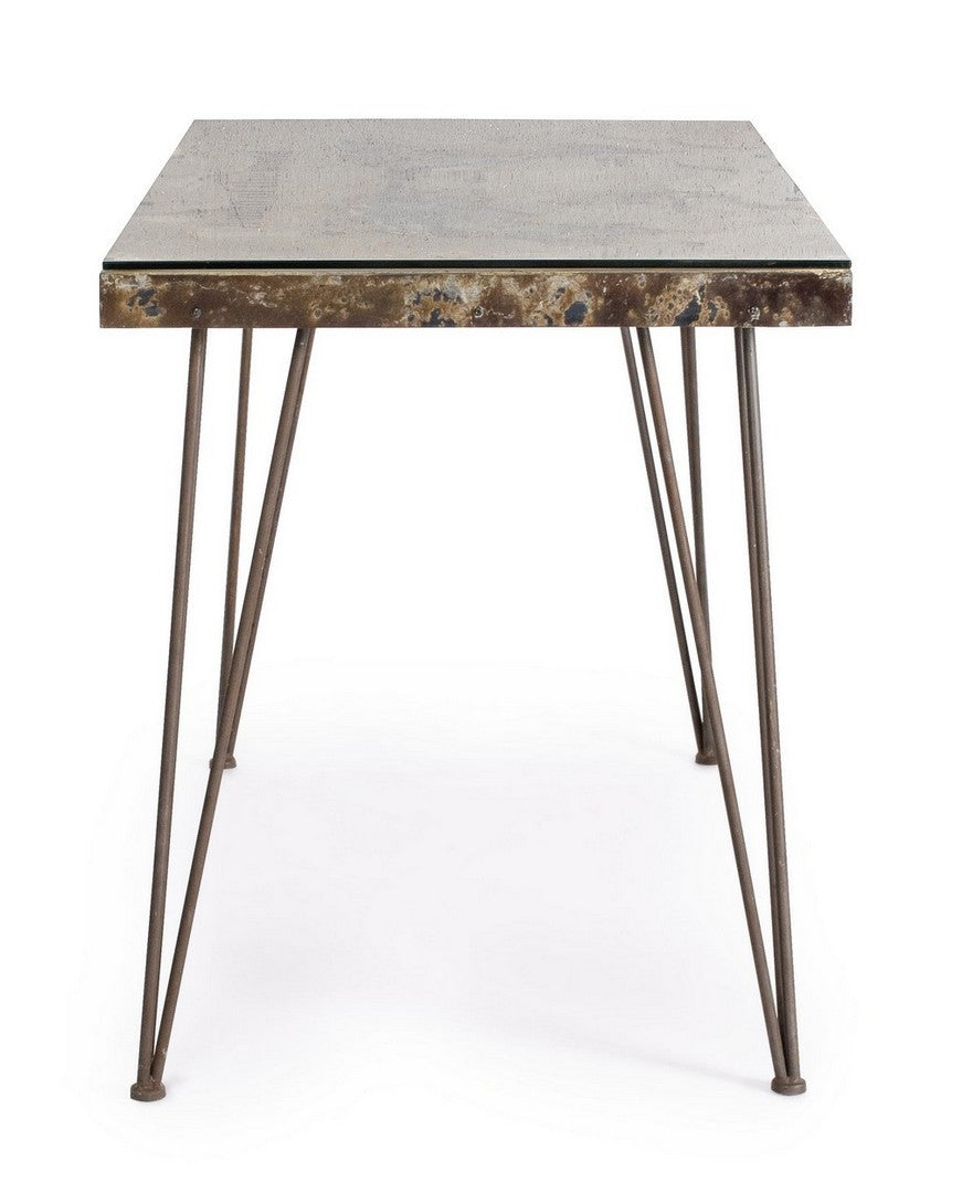 Scrivania "Atlantide" struttura in acciaio anticato, stile industriale, 130 x 65 x 75 cm