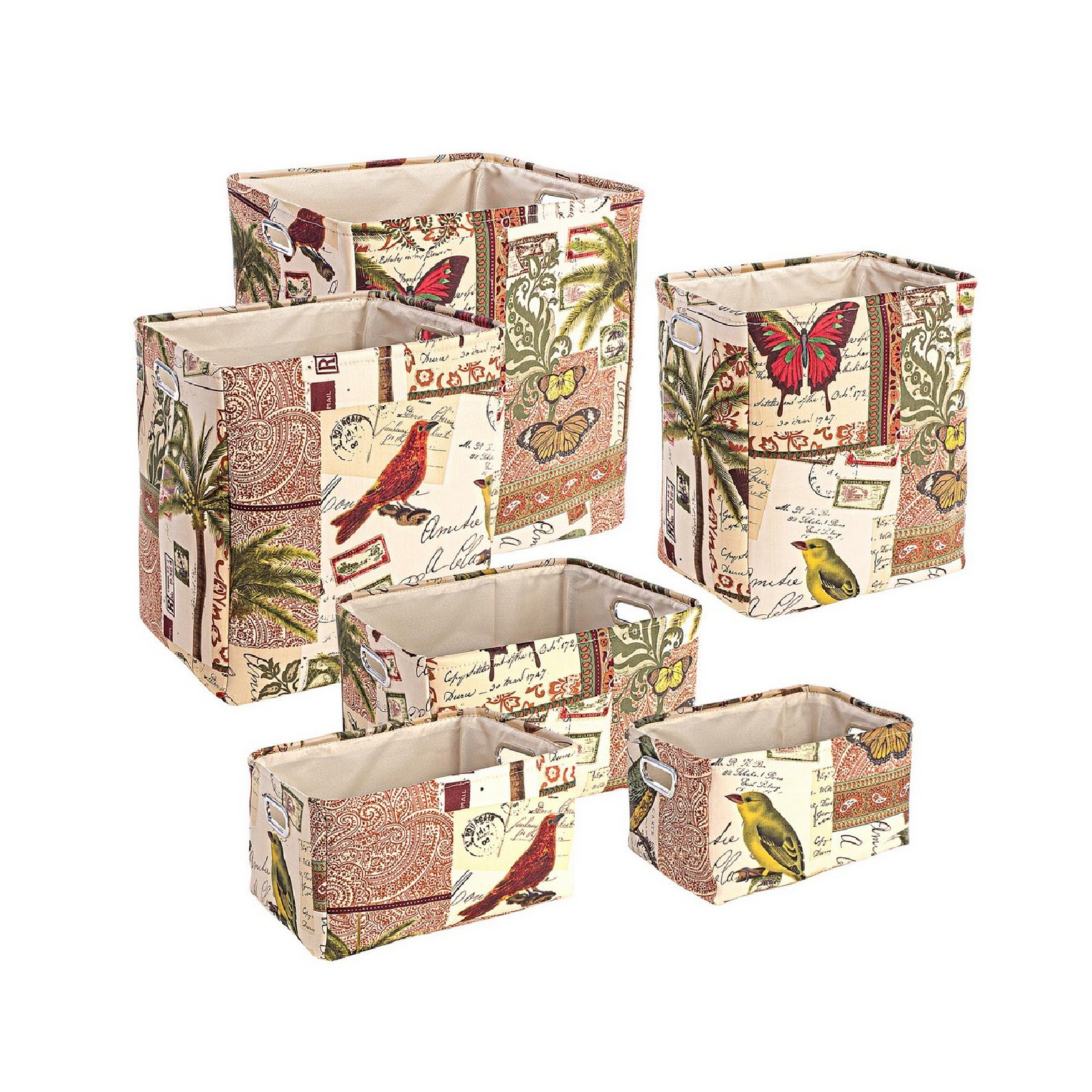 In breve, il set 6 porta oggetti "Botanic" rappresenta un'aggiunta versatile e funzionale alla tua casa, con una struttura resistente in plastica, rivestimenti esterni in cotone e colori vivaci per soddisfare le tue esigenze di organizzazione e stile.