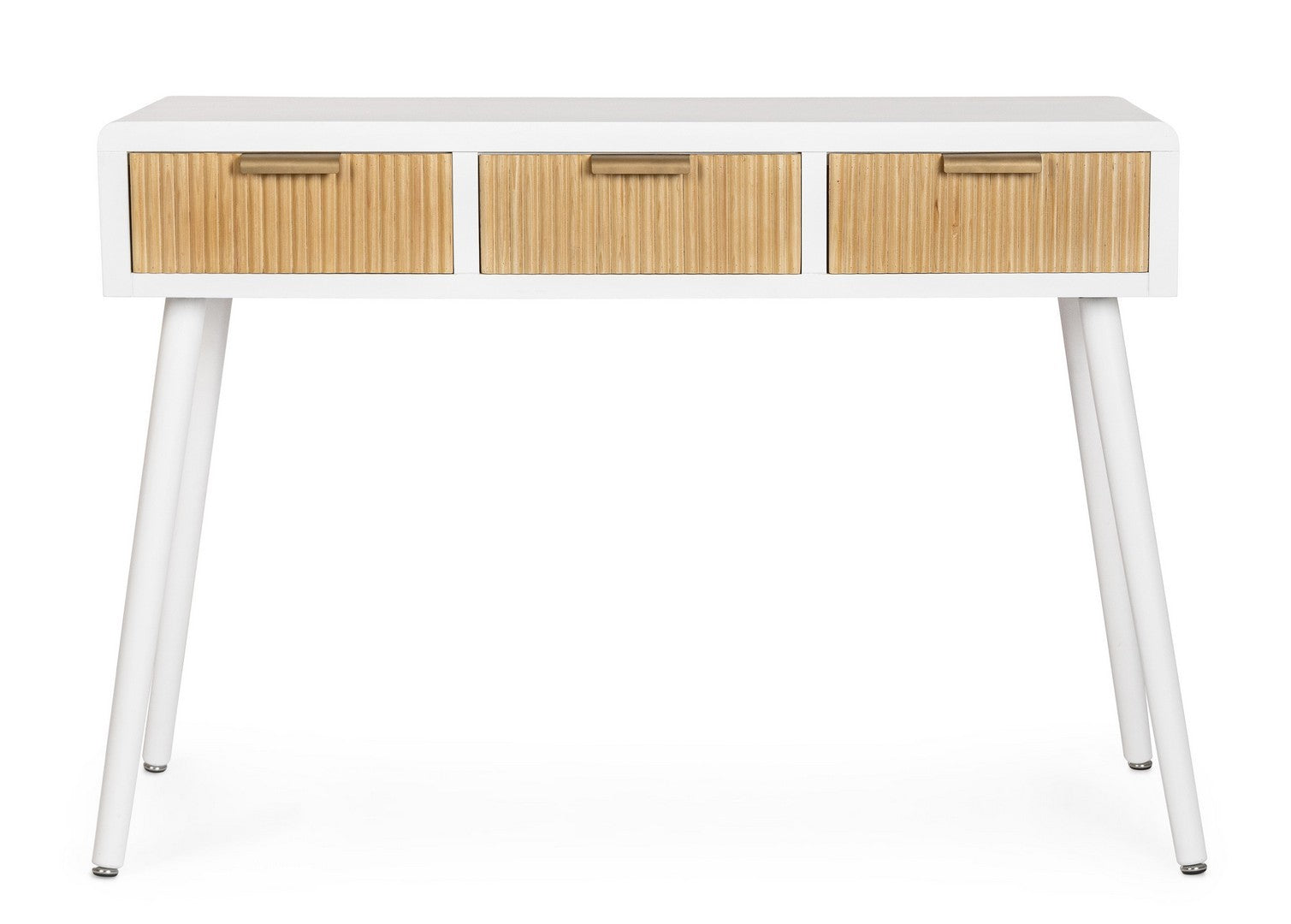 Consolle "Charley" con struttura in mdf, colore bianco-naturale, 110 x 40 x 78h cm