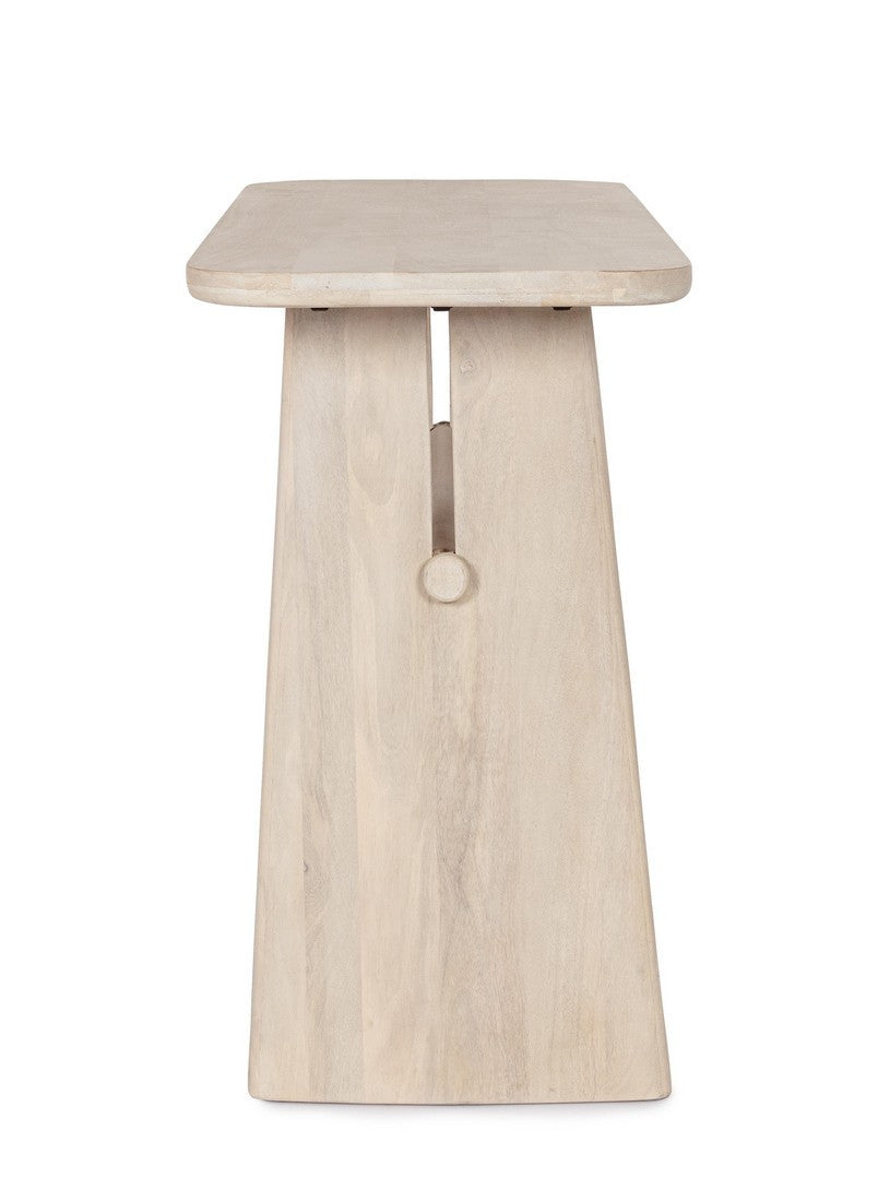 La consolle "Elisheva" è un pregiato pezzo d’arredamento realizzato interamente in legno di mango massiccio, un materiale noto per la sua resistenza e le calde sfumature naturali.