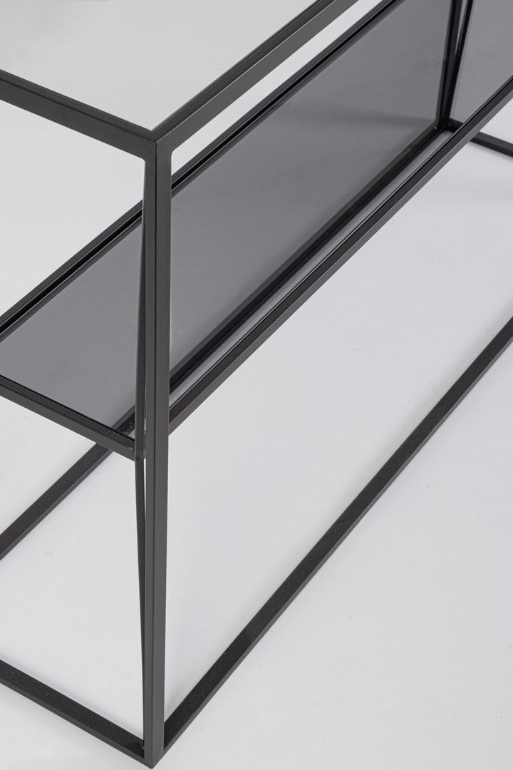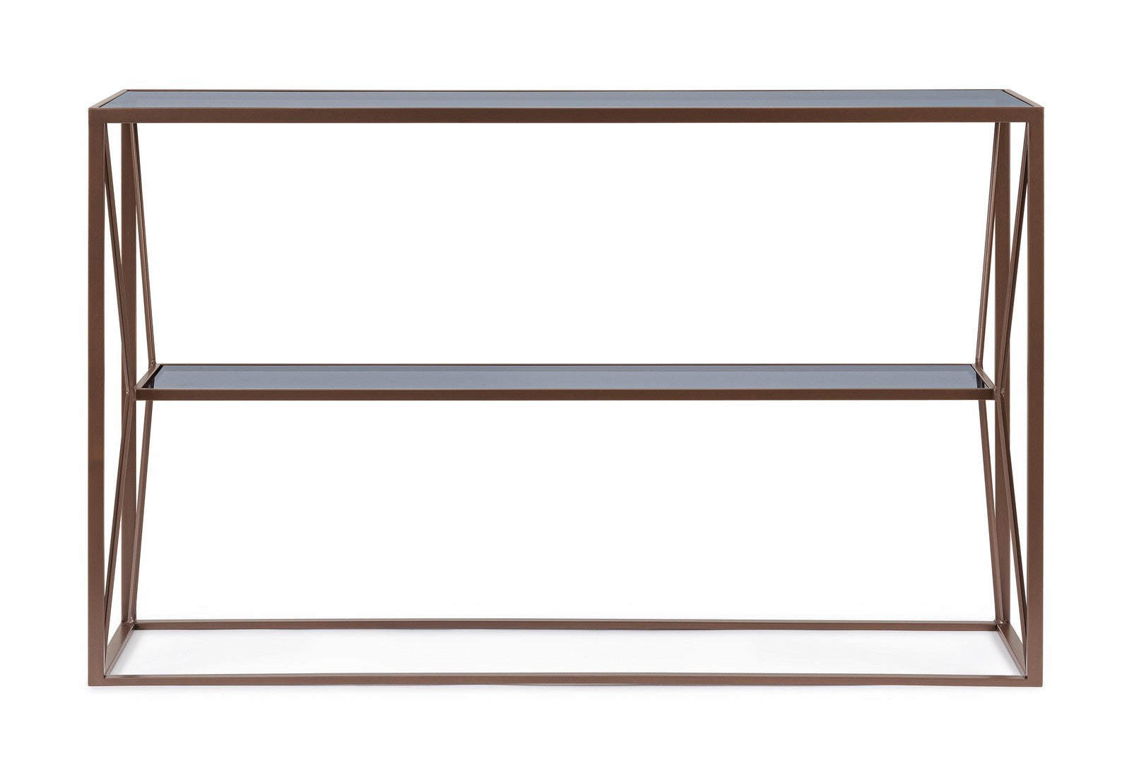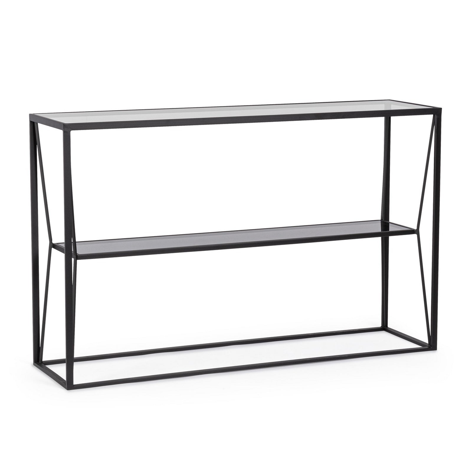Consolle "Hydra" con struttura in acciaio, piani in vetro, da 120 x 32 x 75h cm