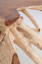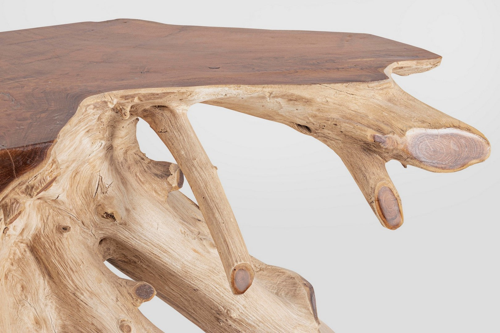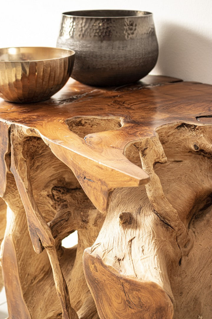 Questo materiale naturale, prelevato direttamente dalle radici dell'albero di teak, conferisce alla consolle una bellezza organica e un carattere rustico, mantenendo una connessione diretta con la natura.