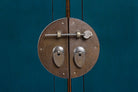 Credenza "Jinan", struttura in legno di olmo riciclato, con finitura lucida, maniglie in rame