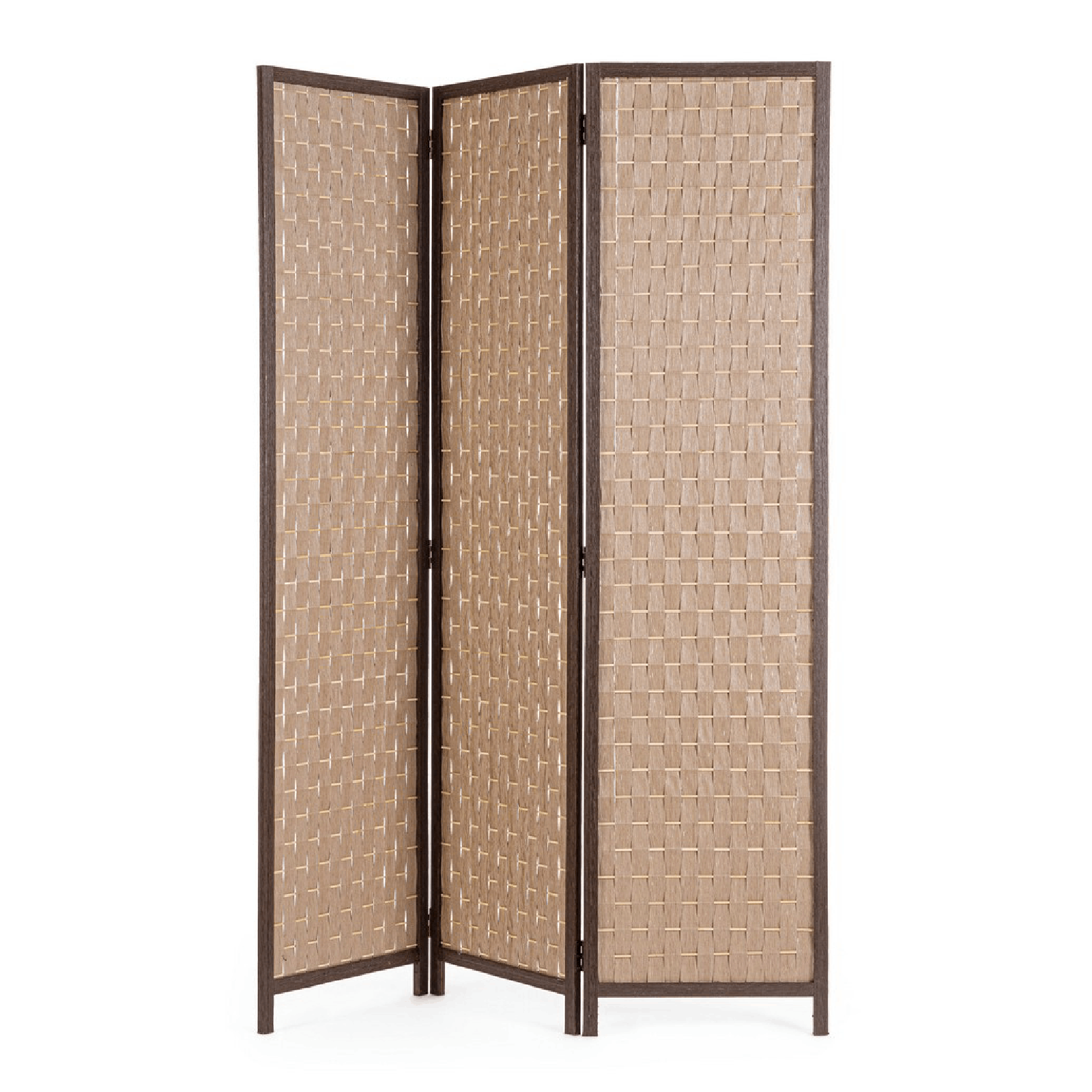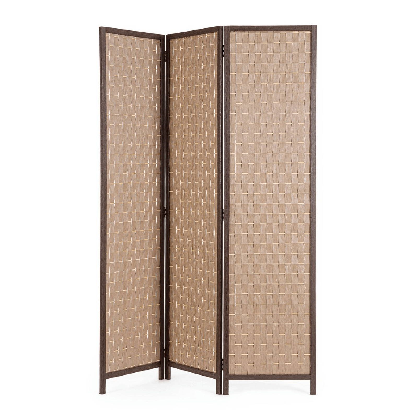 Il paravento "Jorah" è un'aggiunta elegante e funzionale a qualsiasi ambiente domestico, caratterizzato dalla sua combinazione di materiali naturali e colori caldi.