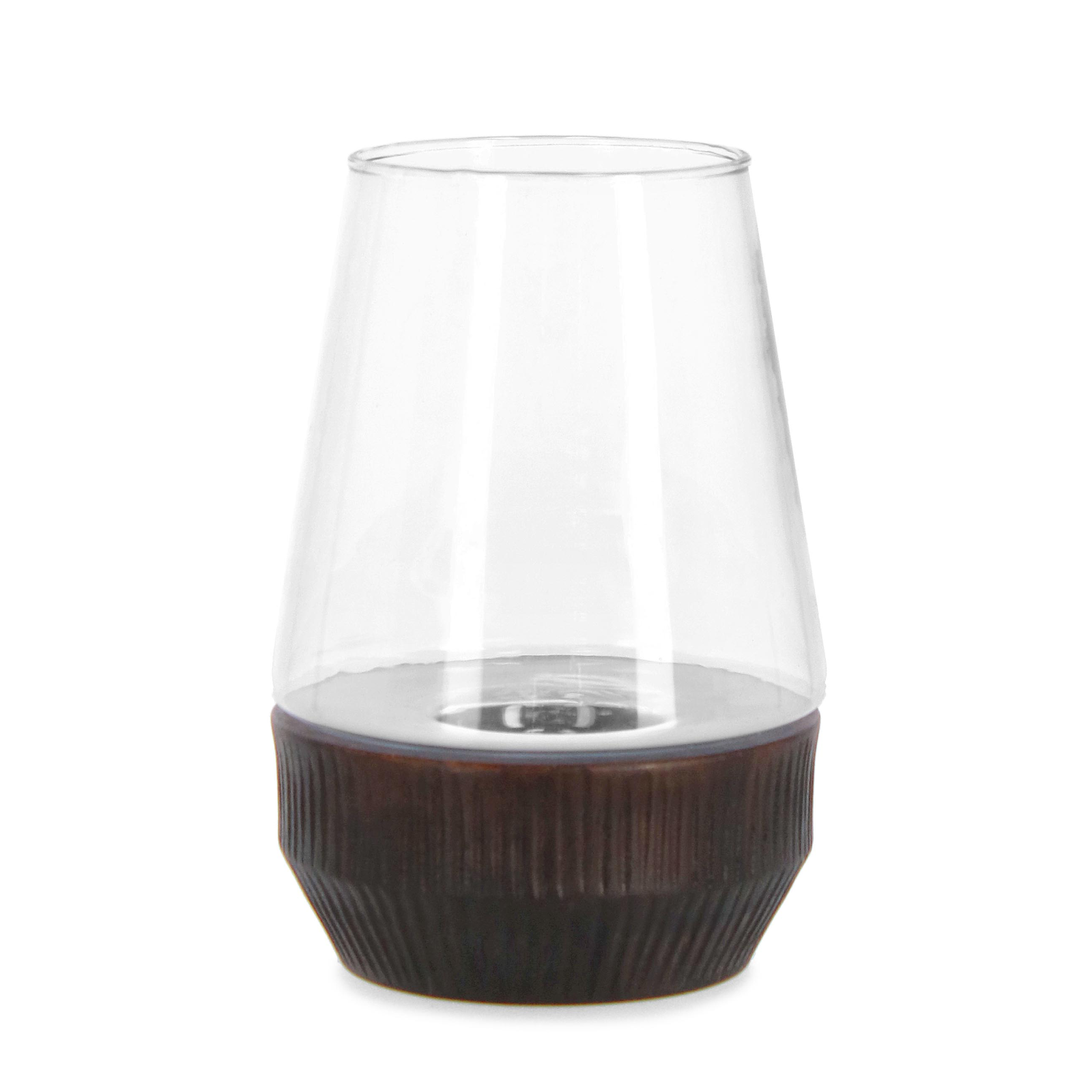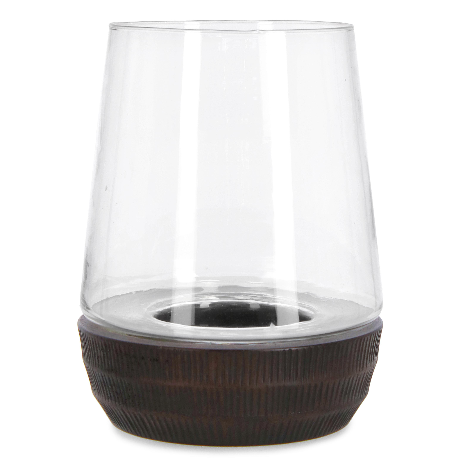 Porta candela dudhi marrone scuro h 24cm fatto con prodotto in legno di mango e vetro realizzato a mano. con eventuali variazioni di colore