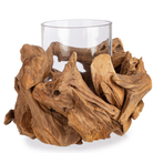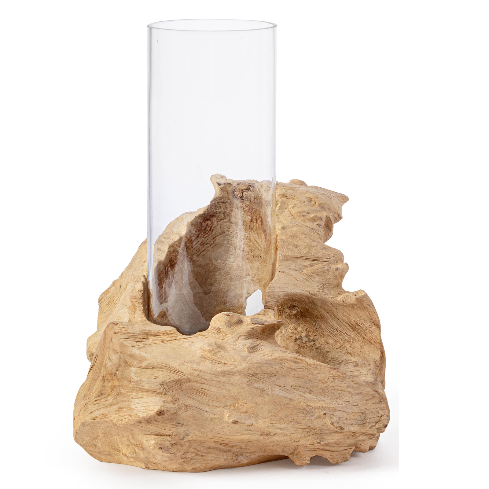 Porta candela in vetro 1P izara nat h 31 con radici di legno teak riciclato, fatto con finitura naturale