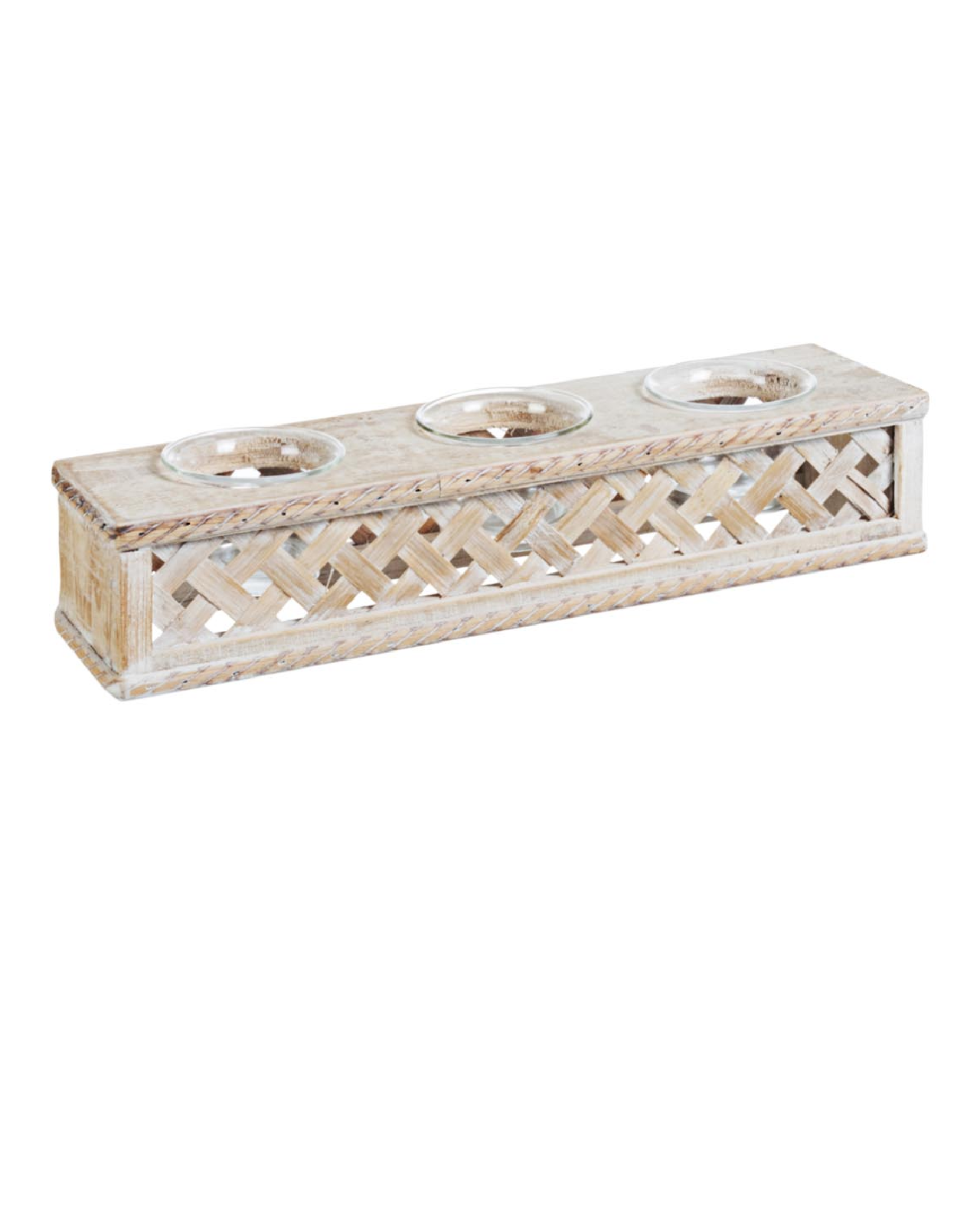 Porta candela intrex in 2 tipi di formati sia da 3 che da 4 pezzi , prodotto realizzato con bambù, legno di abete e vetro
