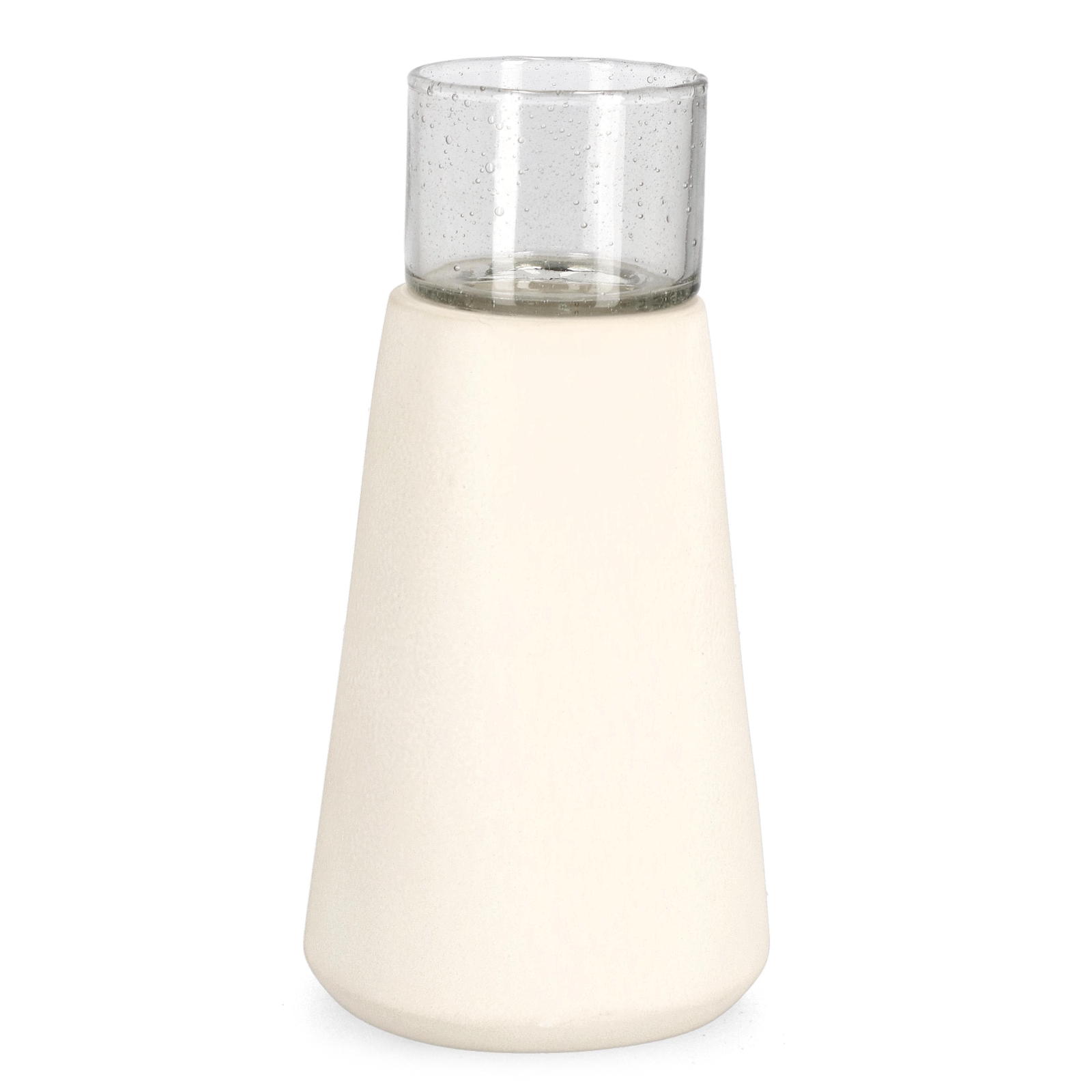 Porta candela mardan vt bianco h 20cm fatto con prodotto in terracotta e vetro. prodotto realizzato a mano con eventuali variazioni di colore