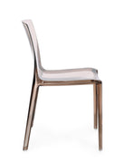 La sua finitura trasparente dona alla sedia un aspetto etereo e raffinato, rendendola ideale per ambienti interni contemporanei, minimalisti o spazi dove si desidera mantenere una sensazione di leggerezza e luminosità.
