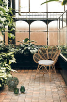 La sedia C-BR C-C Flores Natural è realizzata in rattan e presenta una finitura con vernice melaminica.