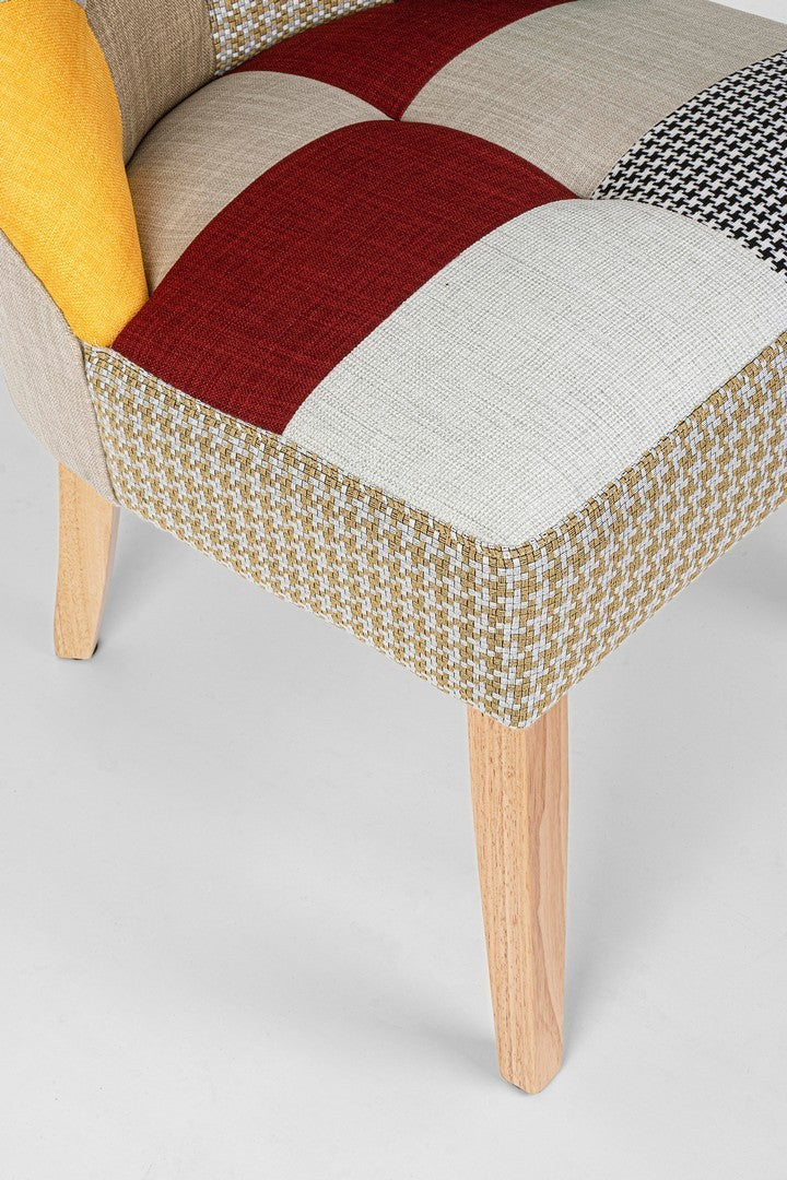 Il rivestimento è realizzato in poliestere e presenta una lavorazione patchwork colorata e creativa.