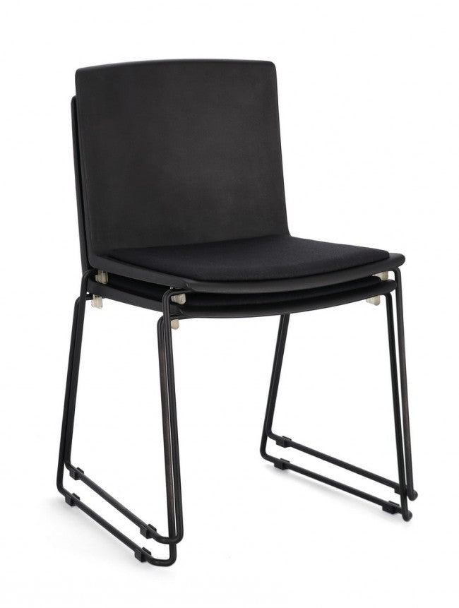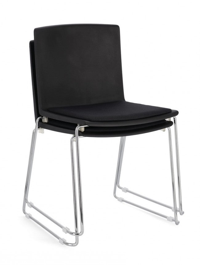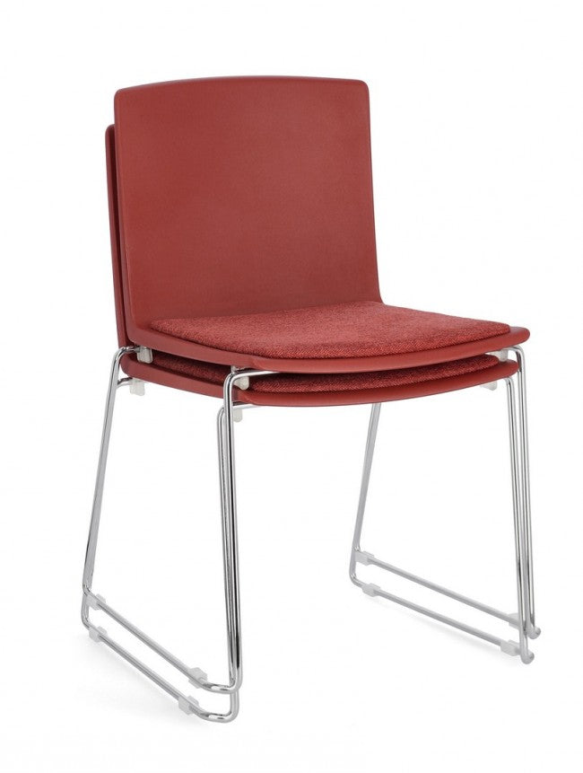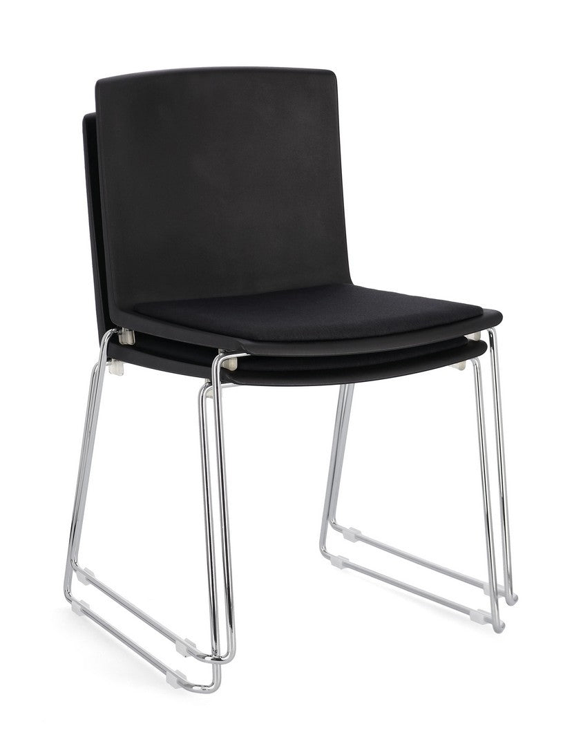 La sedia può essere facilmente impilata, permettendo di risparmiare spazio quando non in uso.