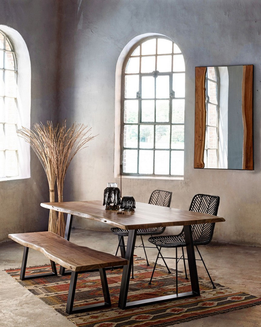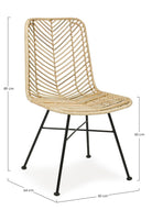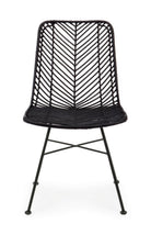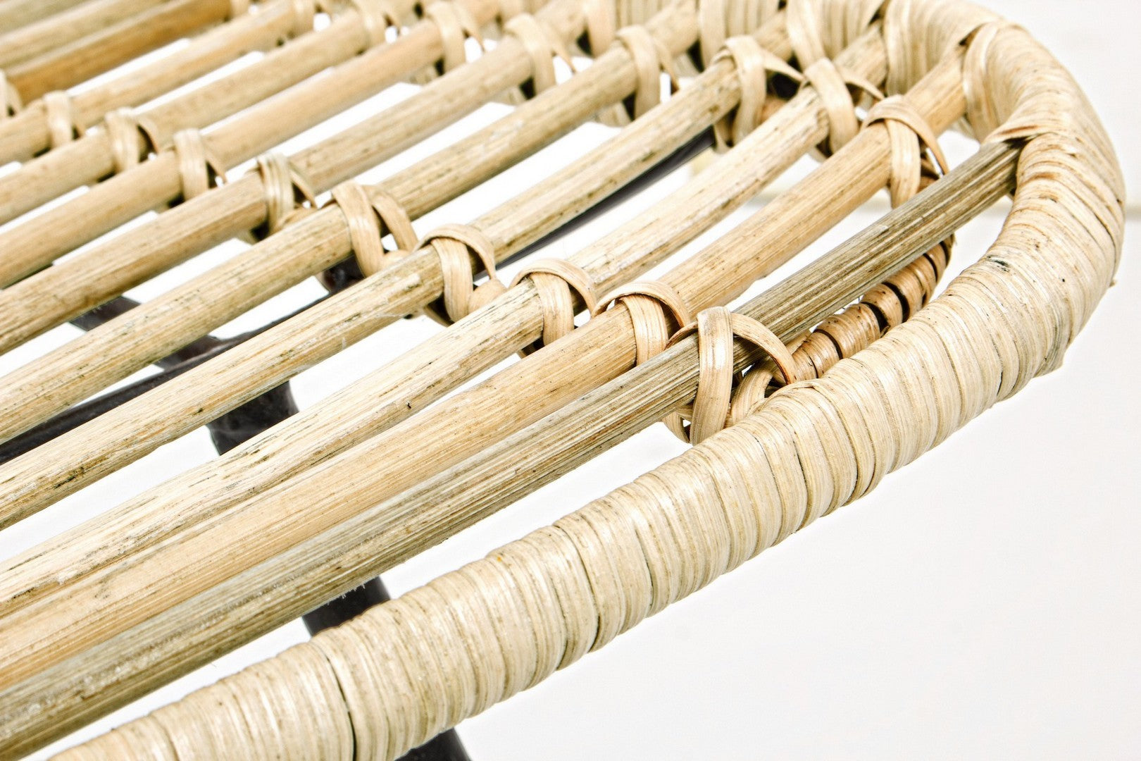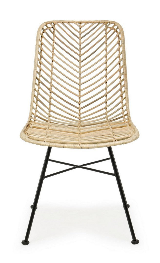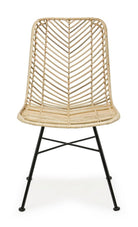 Il sedile e lo schienale sono realizzati con un intreccio in rattan, conferendo eleganza e stile al prodotto.