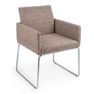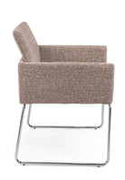 Il rivestimento in tessuto poliestere al 100% conferisce un aspetto elegante e raffinato, mentre le gambe in acciaio cromato aggiungono un tocco di modernità.
