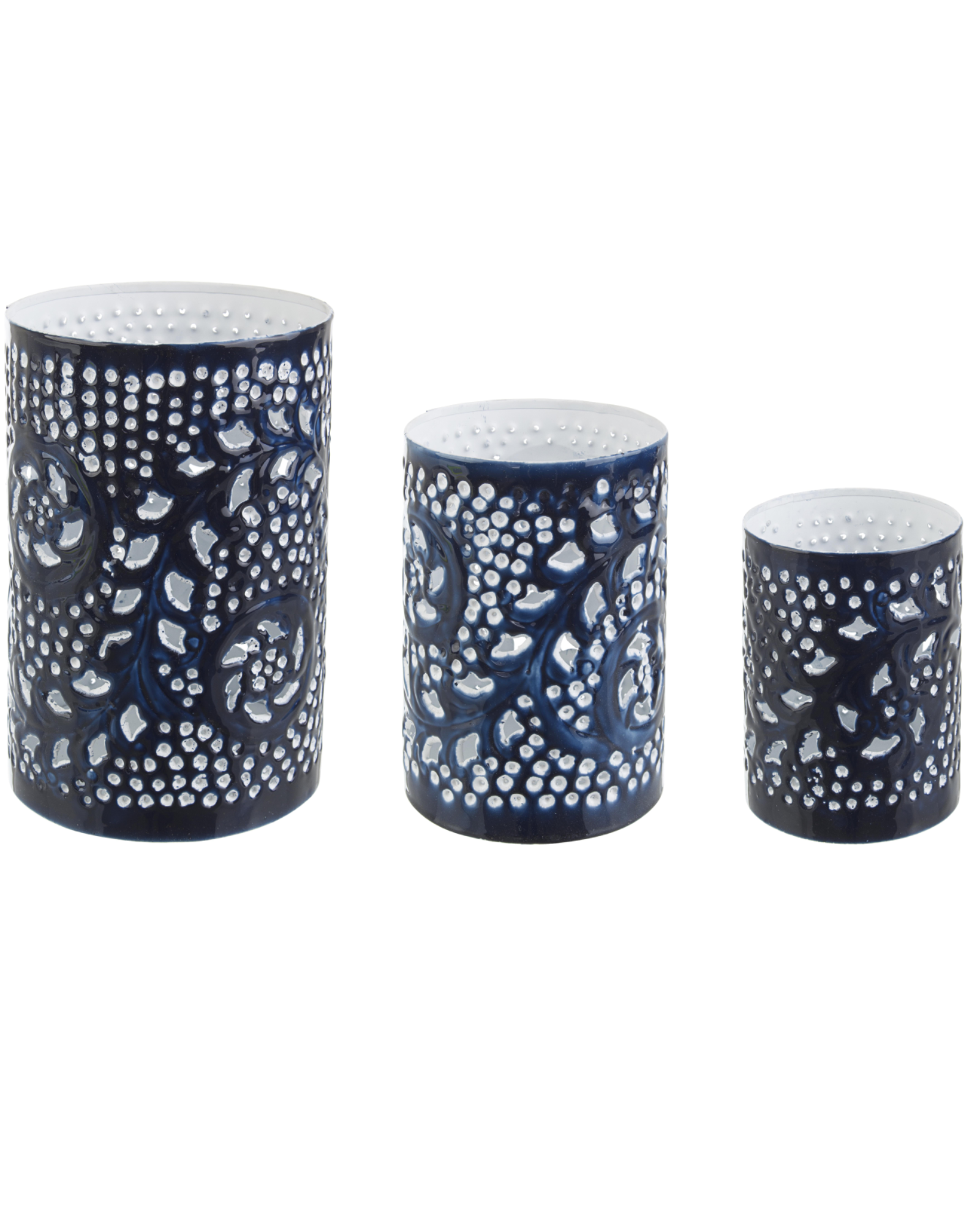 Set 3 porta candela yannick cil blu realizzato in metallo