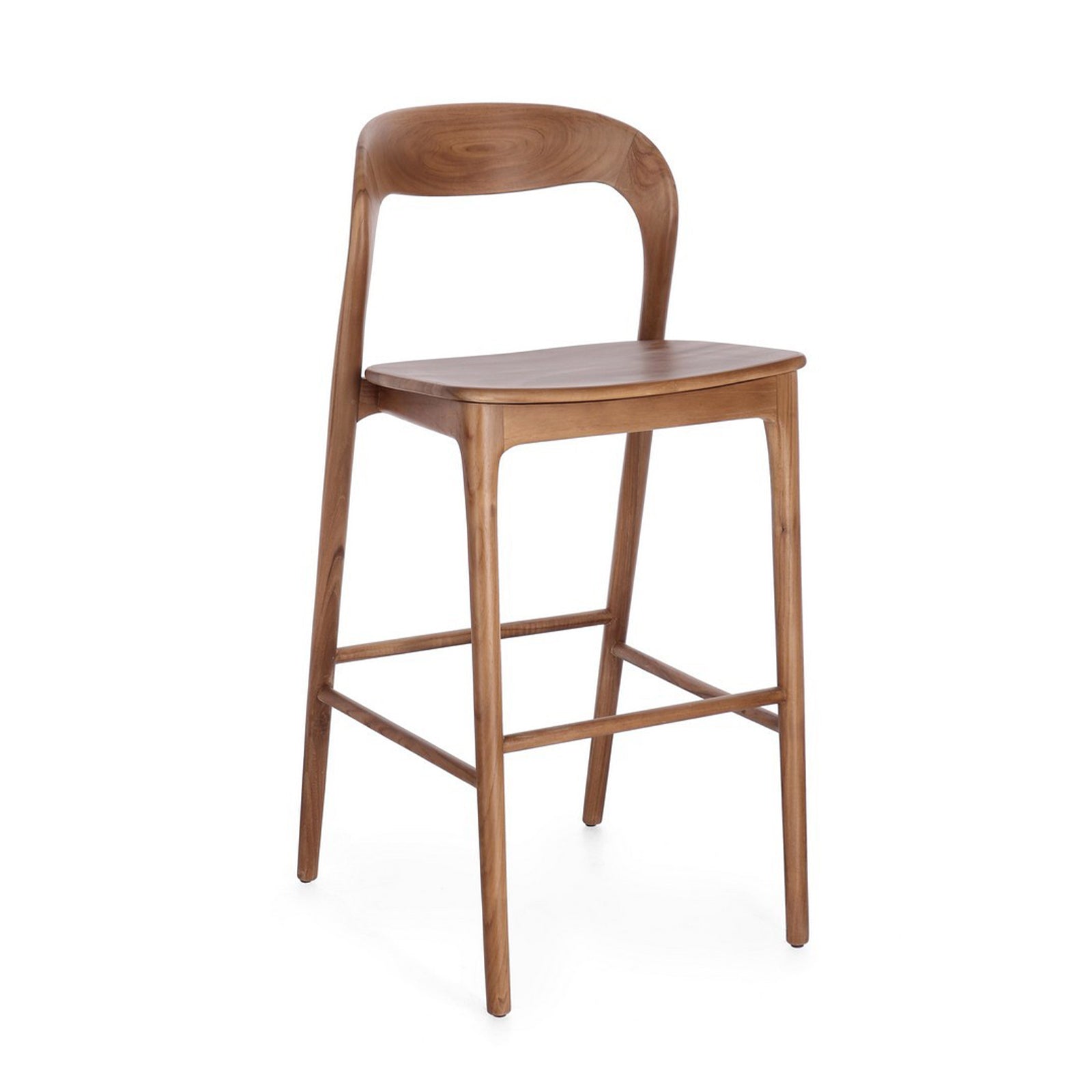 Sgabello "Miley" da bar struttura in legno teak finitura naturale per interni