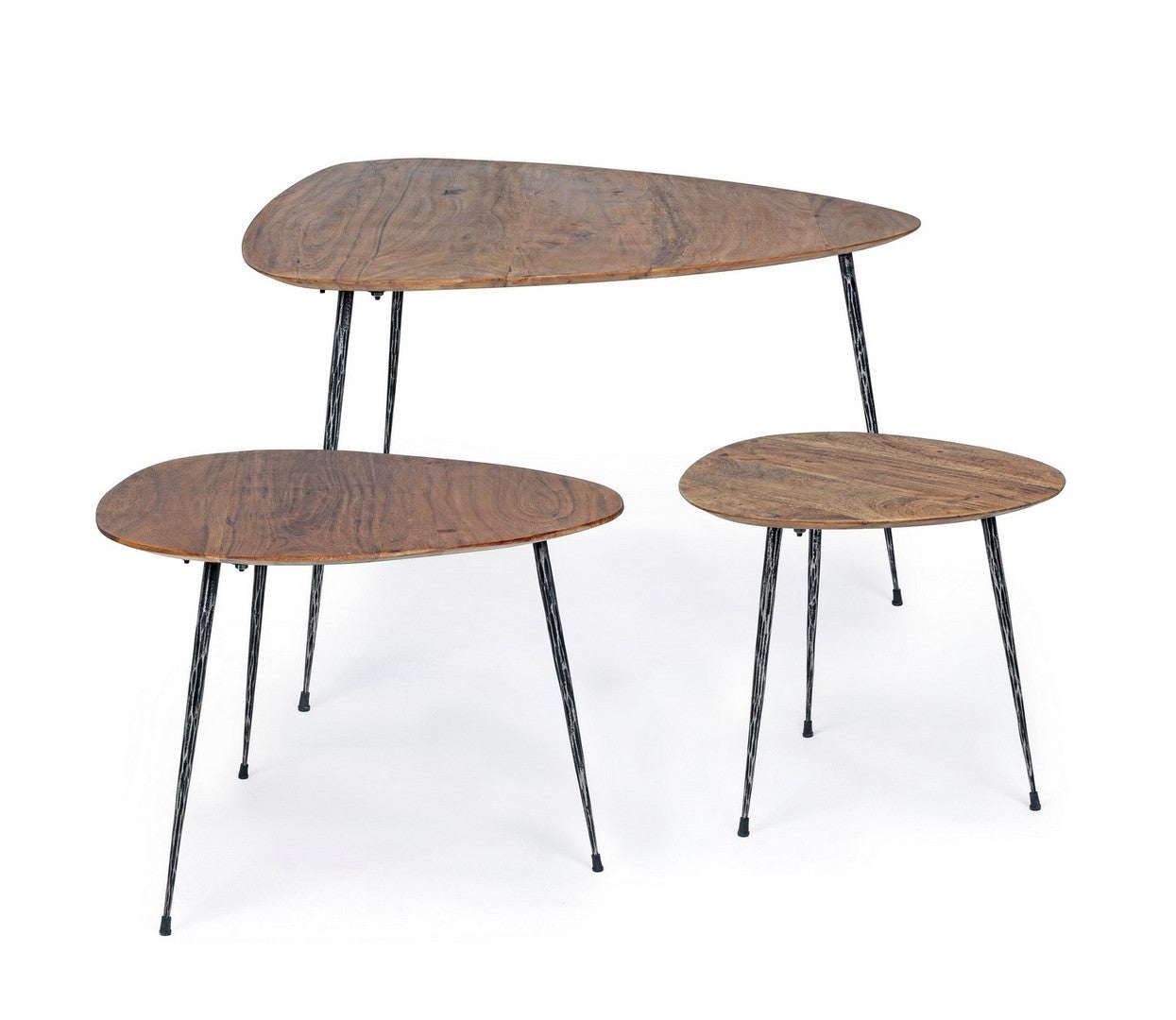 Tavolini "Boscage" gambe in acciaio piano in legno di mango per arredamento set da 3