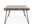 Tavolino "Atlantide" struttura in acciaio anticato piano in vetro per arredamento