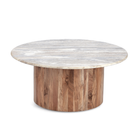 Tavolino eloy, piano in marmo con base in legno di acacia, Ø 80 x 35 cm