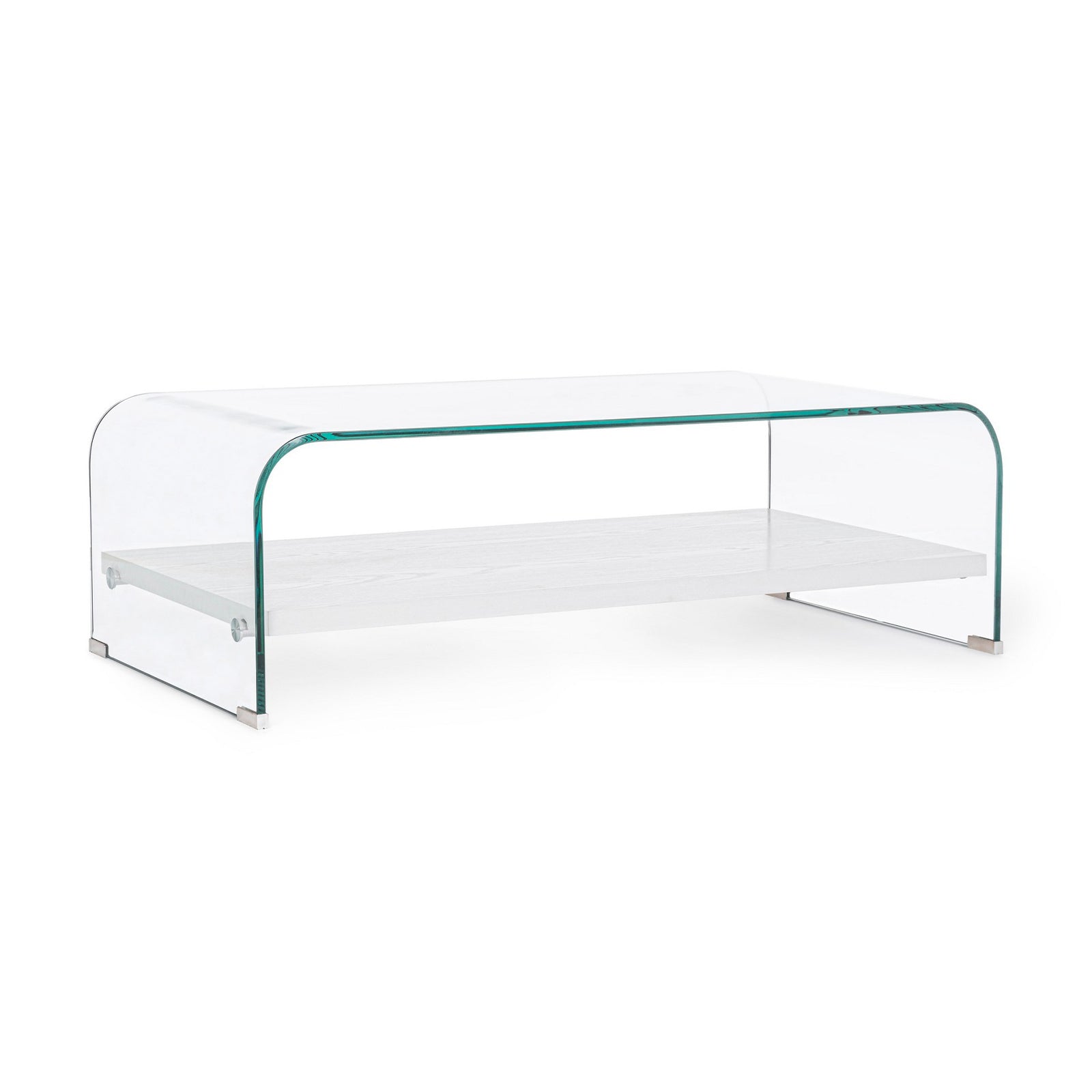 Tavolino "Line Wood" struttura in vetro trasparente per arredamento