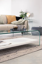 Il tavolino "Line Wood" è un pezzo d'arredo che si distingue per il suo design elegante e contemporaneo, caratterizzato da una struttura interamente in vetro trasparente che dona leggerezza e modernità all’ambiente.