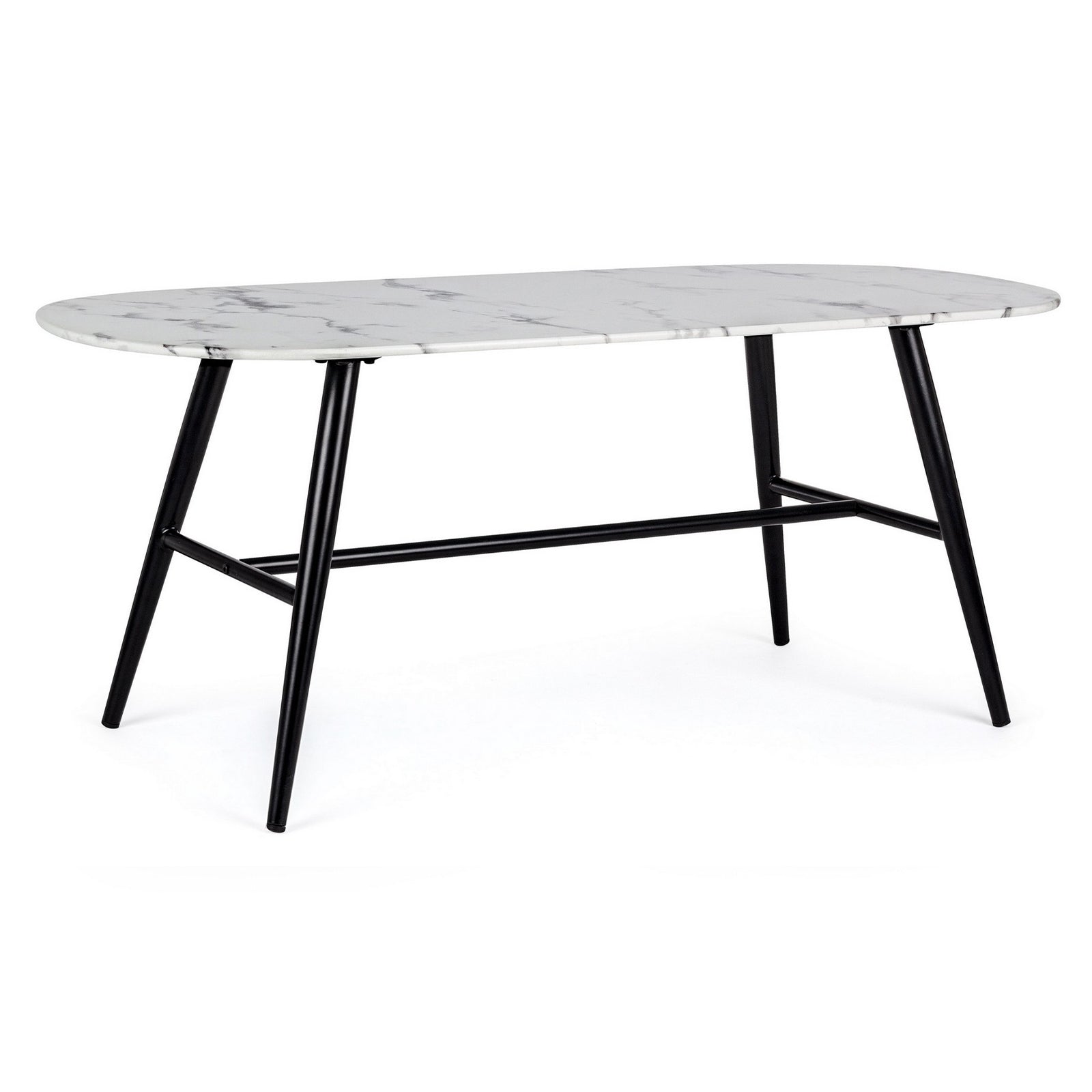 Tavolino "Marble" gambe in acciaio e piano in vetro effetto marmo per arredamento