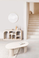 La forma ovale del tavolino "Orlando" gli dona un aspetto armonioso e fluido, perfetto per chi desidera un mobile dalle linee morbide che spezza la rigidità delle forme tradizionali, senza rinunciare a un design elegante e funzionale.