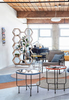 Tavolino "Painter" struttura in acciaio verniciato con specchio per arredamento