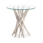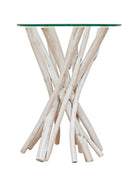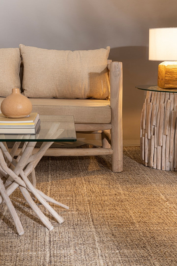 Realizzato con rami di teak sbiancato, questo tavolino si distingue per l'aspetto organico e irregolare, che richiama la bellezza dei materiali naturali mantenendo un'estetica minimalista.