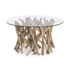 I rami di teak, lasciati nella loro forma naturale, sono accuratamente selezionati e assemblati per creare una base intricata e affascinante.