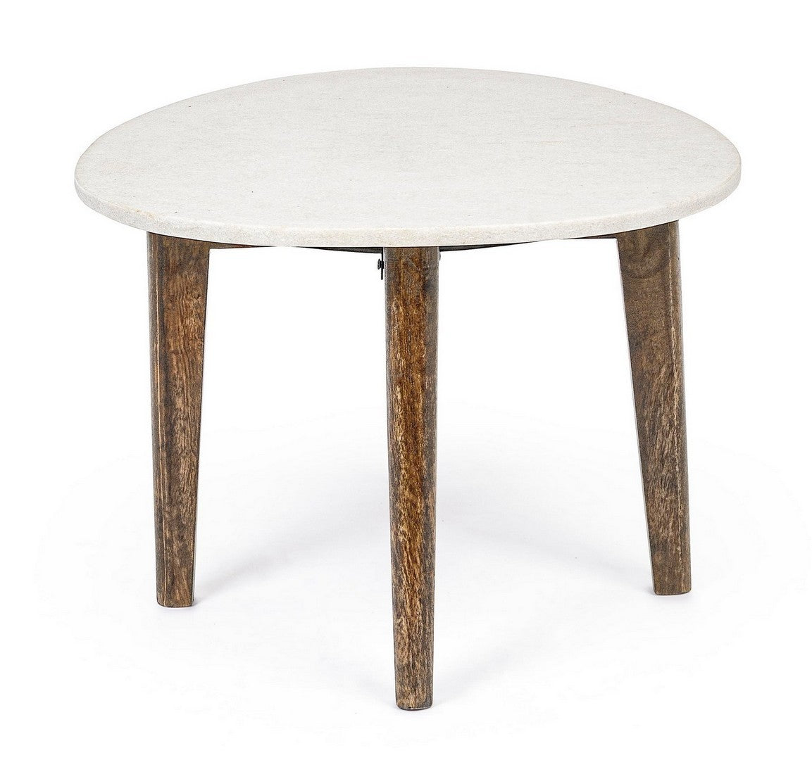 Tavolino "Sylvester" gambe in legno di mango e piano in marmo per interni