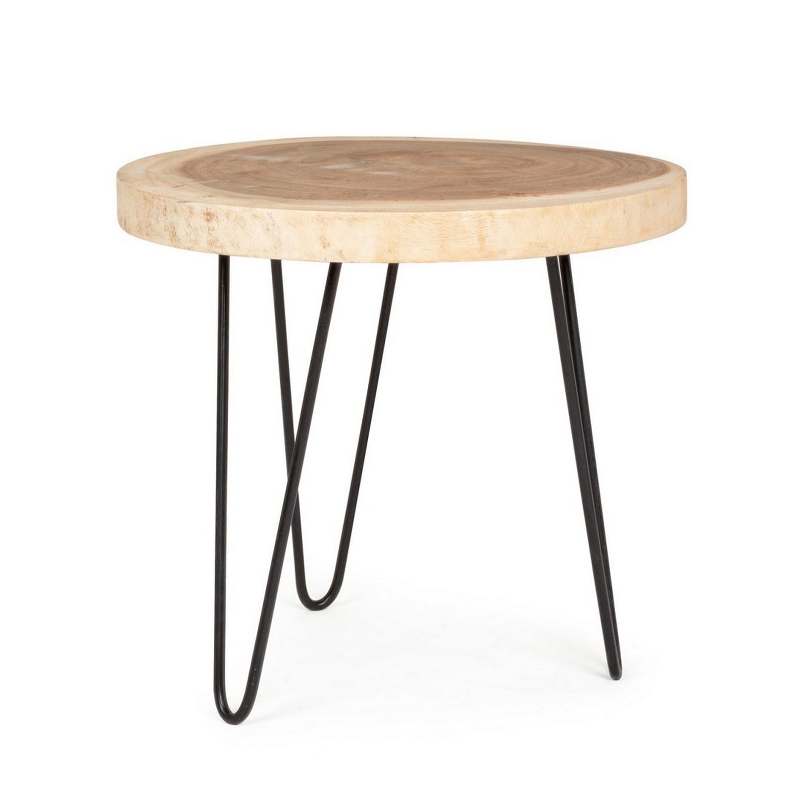 Tavolino "Tuala" gambe in acciaio e piano in legno mungur per interni