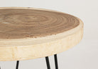 Il piano del tavolino è realizzato in legno di mungur, noto per la sua resistenza e la sua texture unica.