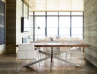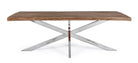 Il Tavolo Arkansas 220x100 by Bizzotto è un tavolo di design dotato di gambe in acciaio inossidabile, piano in legno d'acacia in sezioni originali di tronco con finitura acrilica protettiva.