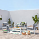 Salottino 4 posti con cuscini "Kubik" in alluminio verniciato da giardino e veranda