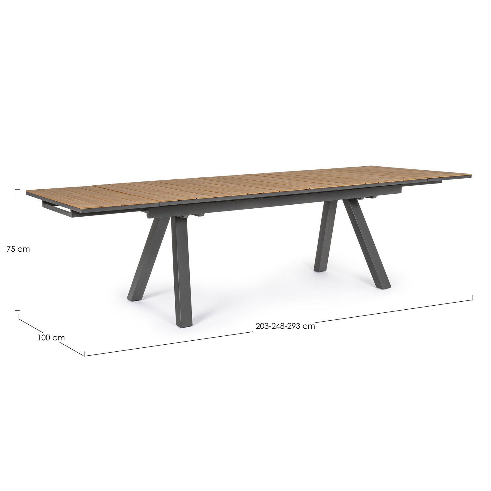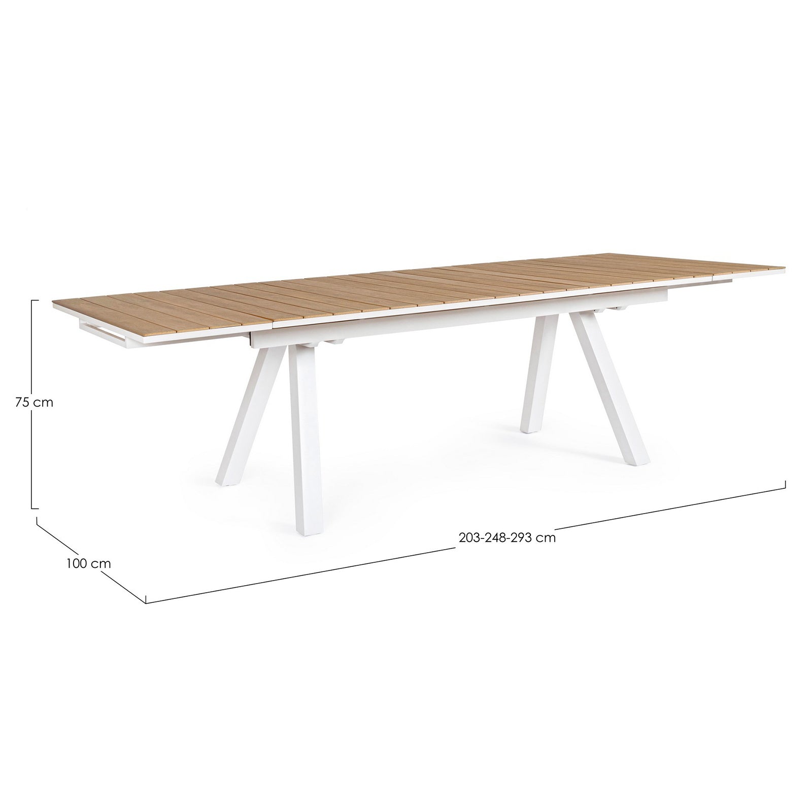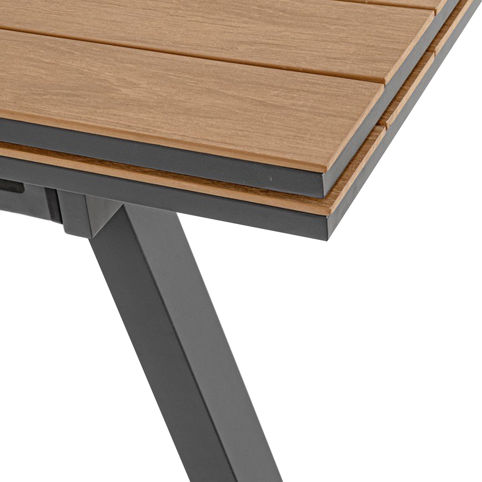 - Materiale braccioli e piano tavolino: In alluminio con verniciatura effetto legno.