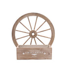 La fioriera con ruota in legno per fiori e piante da giardino e esterno è un complemento ideale per decorare e arricchire gli spazi verdi all'aperto.