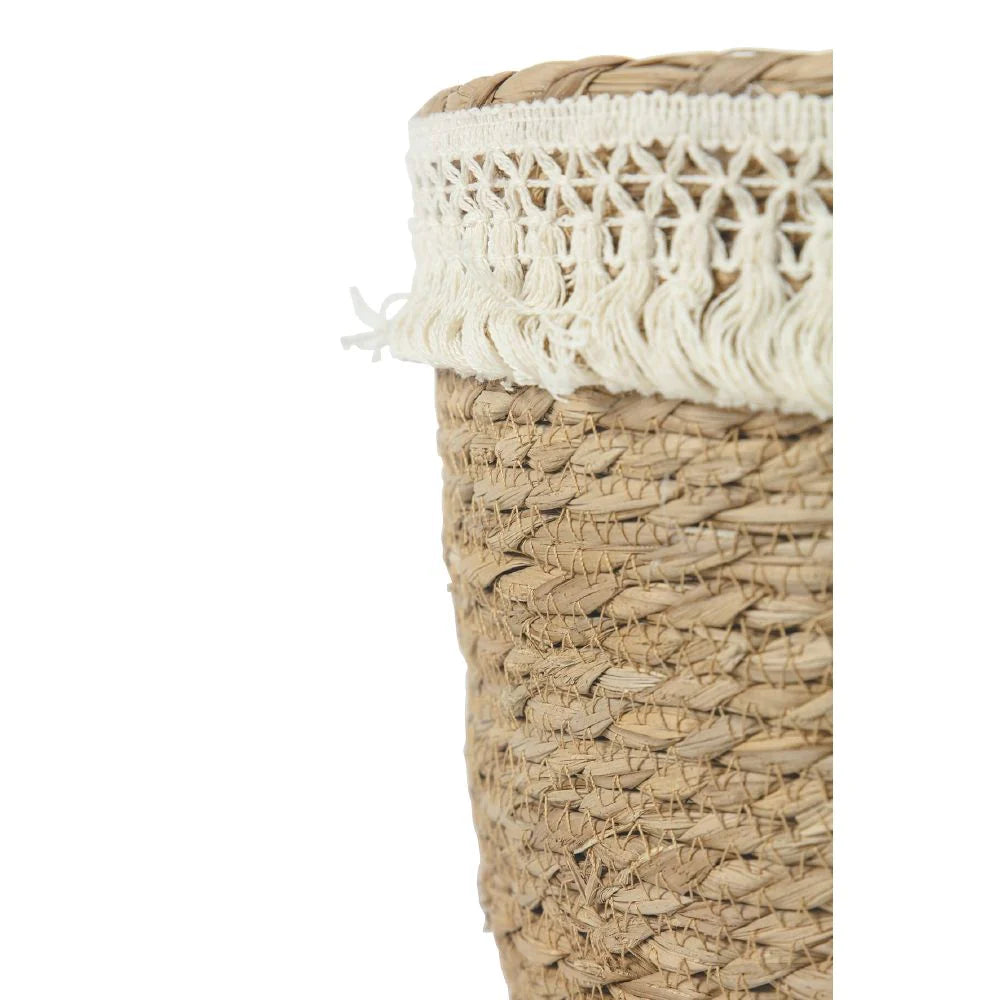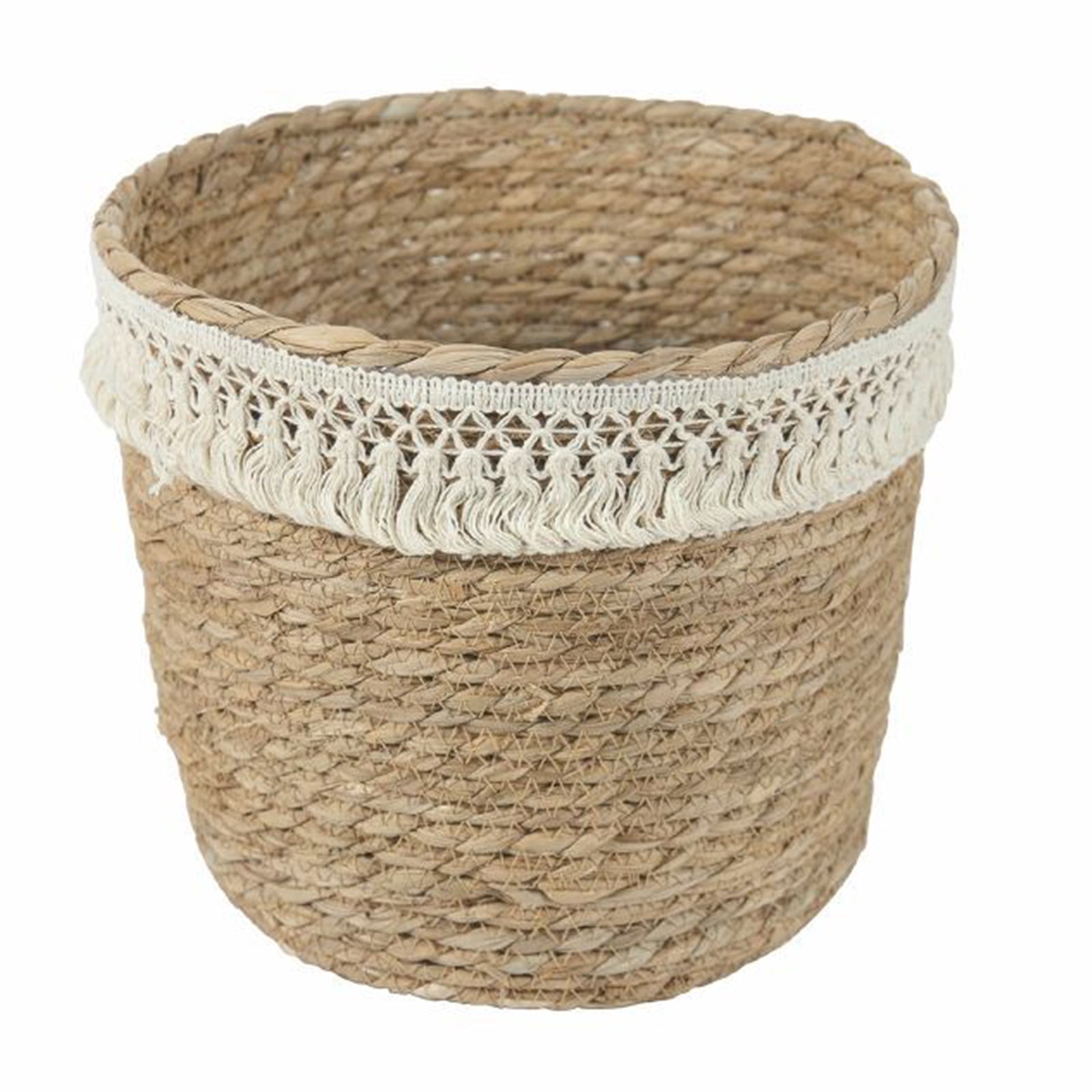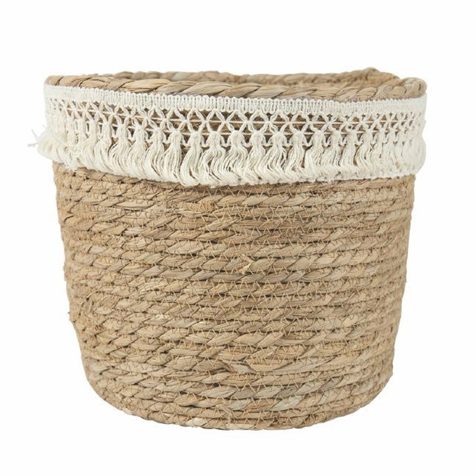 Realizzato in morbido filo di cotone intrecciato, presenta un motivo geometrico intricato con frange a mazzo alla base per un tocco di stile boho-chic.