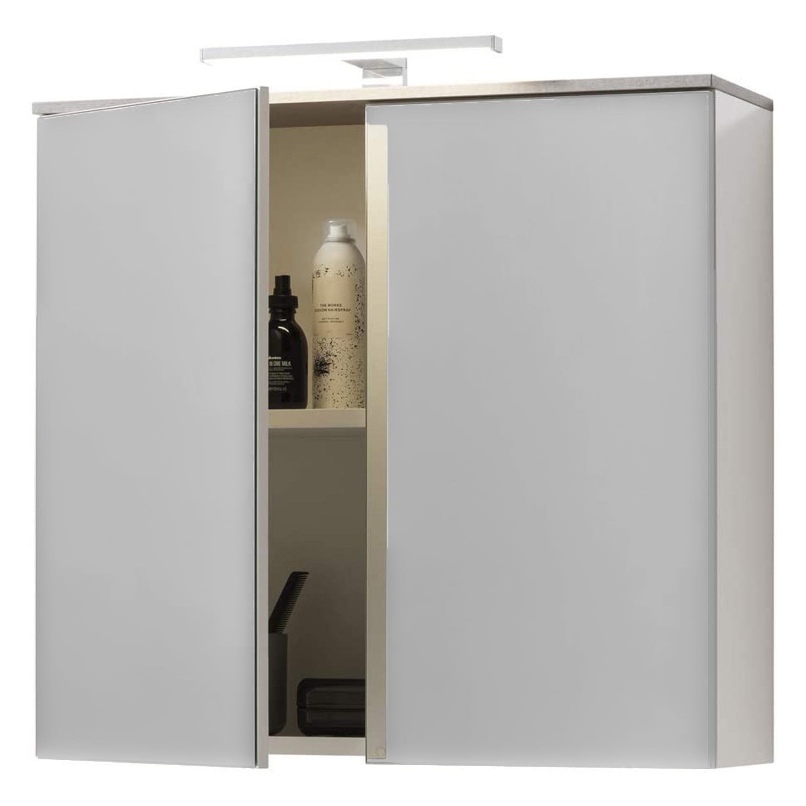 Pensile da Bagno Galaverna Bianco Lucido e Cemento con 2 ante Specchiate con Lampade a LED