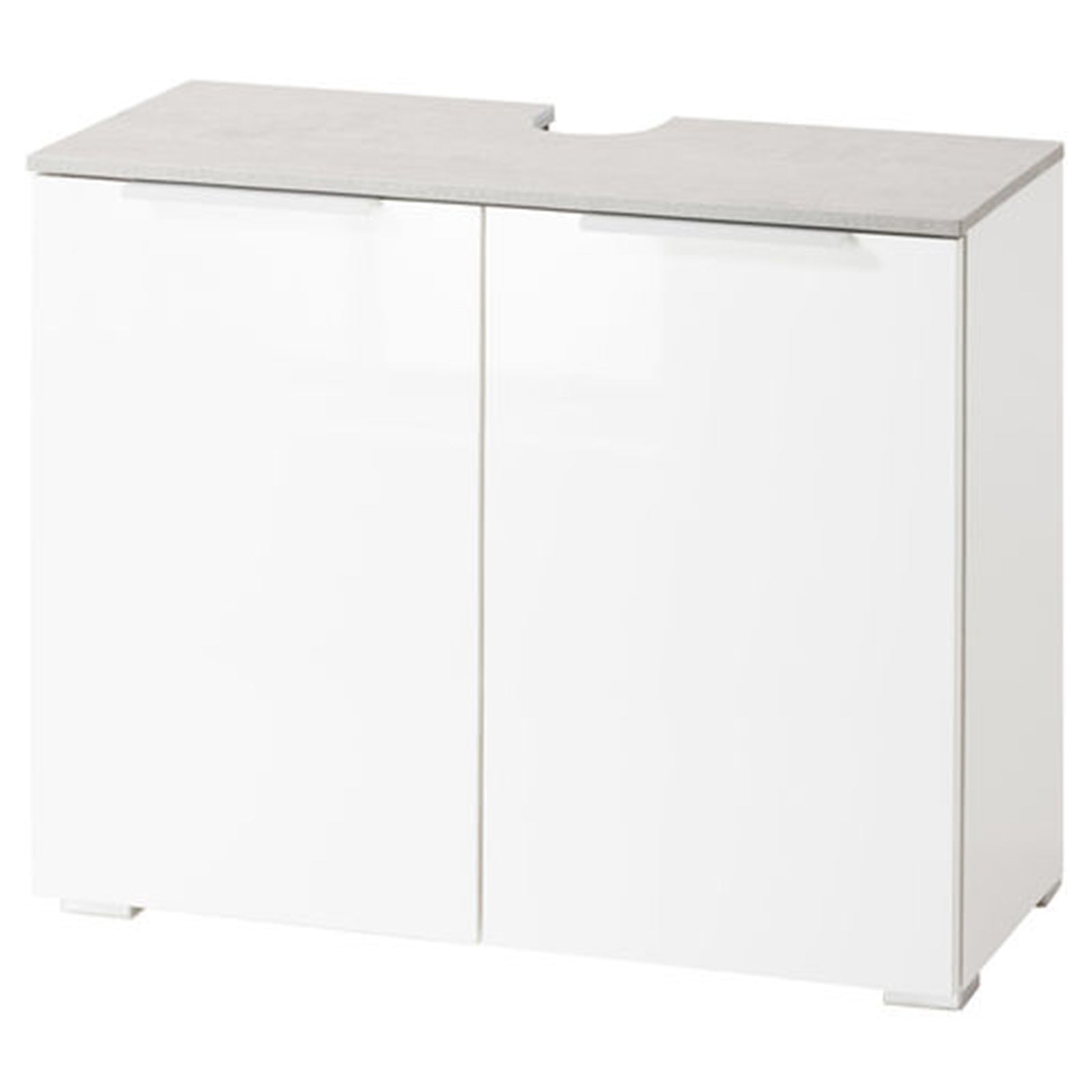 Sotto lavello da bagno bianco lucido e cemento h 58 cm con 2 ante in legno