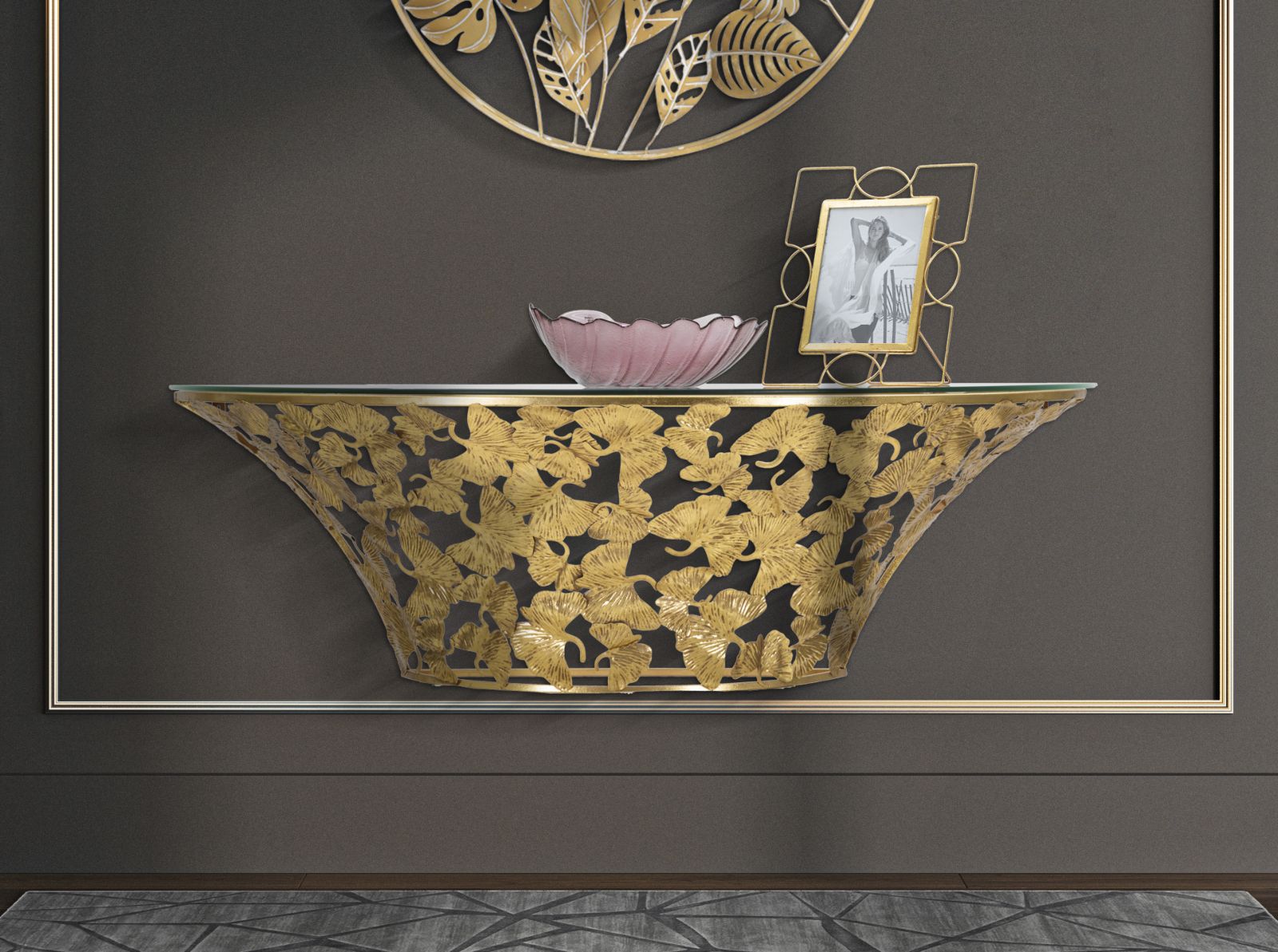 Questo tipo di console si caratterizza per la sua struttura sottile e resistente in metallo, che può variare in termini di colore e finitura, spaziando dal classico nero o bianco a tonalità più audaci o finiture metalliche come l'ottone, il bronzo o l'acciaio inossidabile.