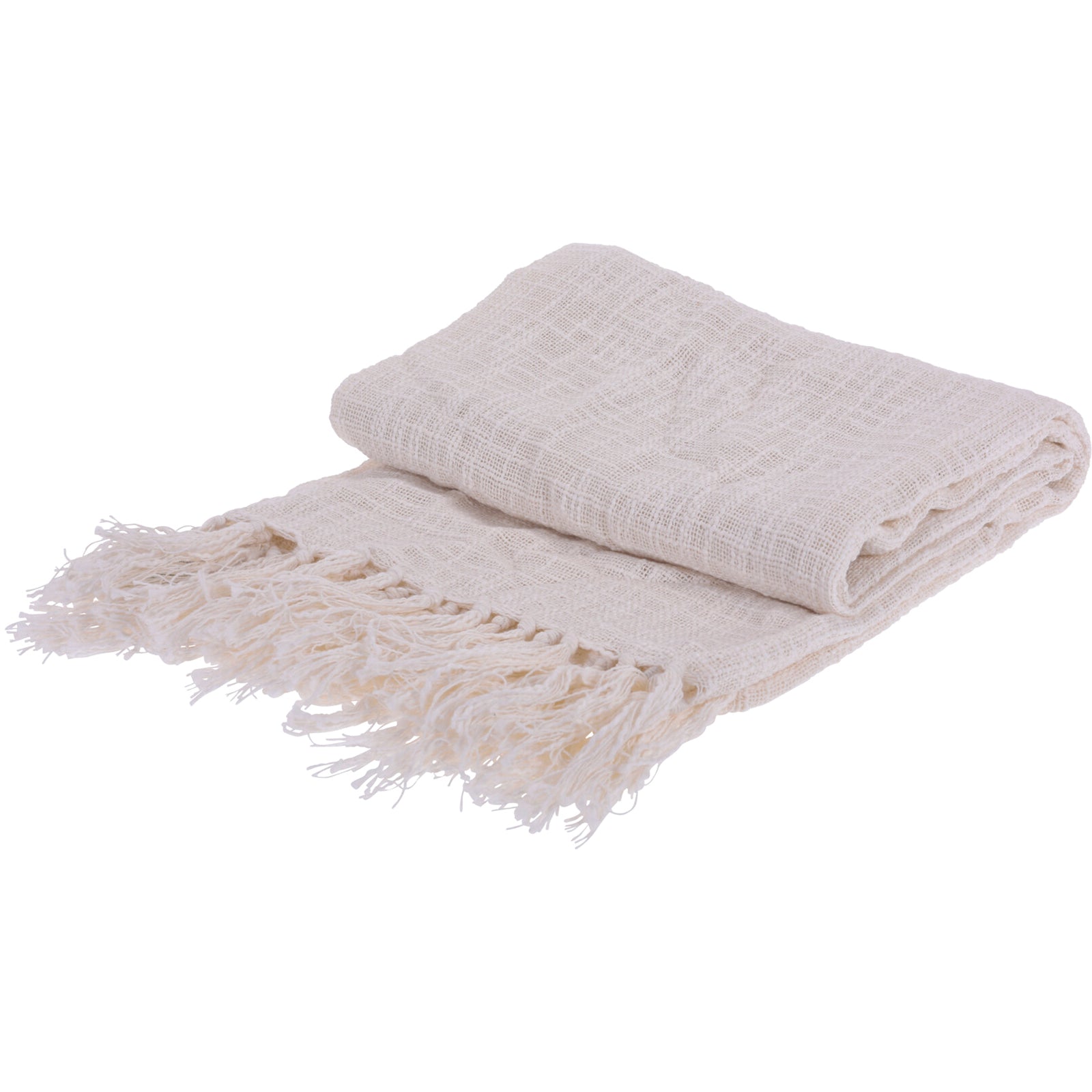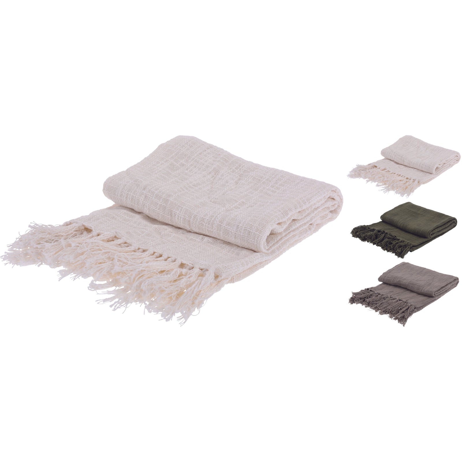 Coperta decorativa leggera trama larga con frange in cotone per letto e divano 170 cm