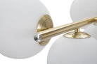 La brillantezza e il calore del colore oro si combinano armoniosamente con gli elementi in vetro, che riflettono e diffondono la luce in modo soffuso e accogliente, creando un'atmosfera invitante e confortevole.
