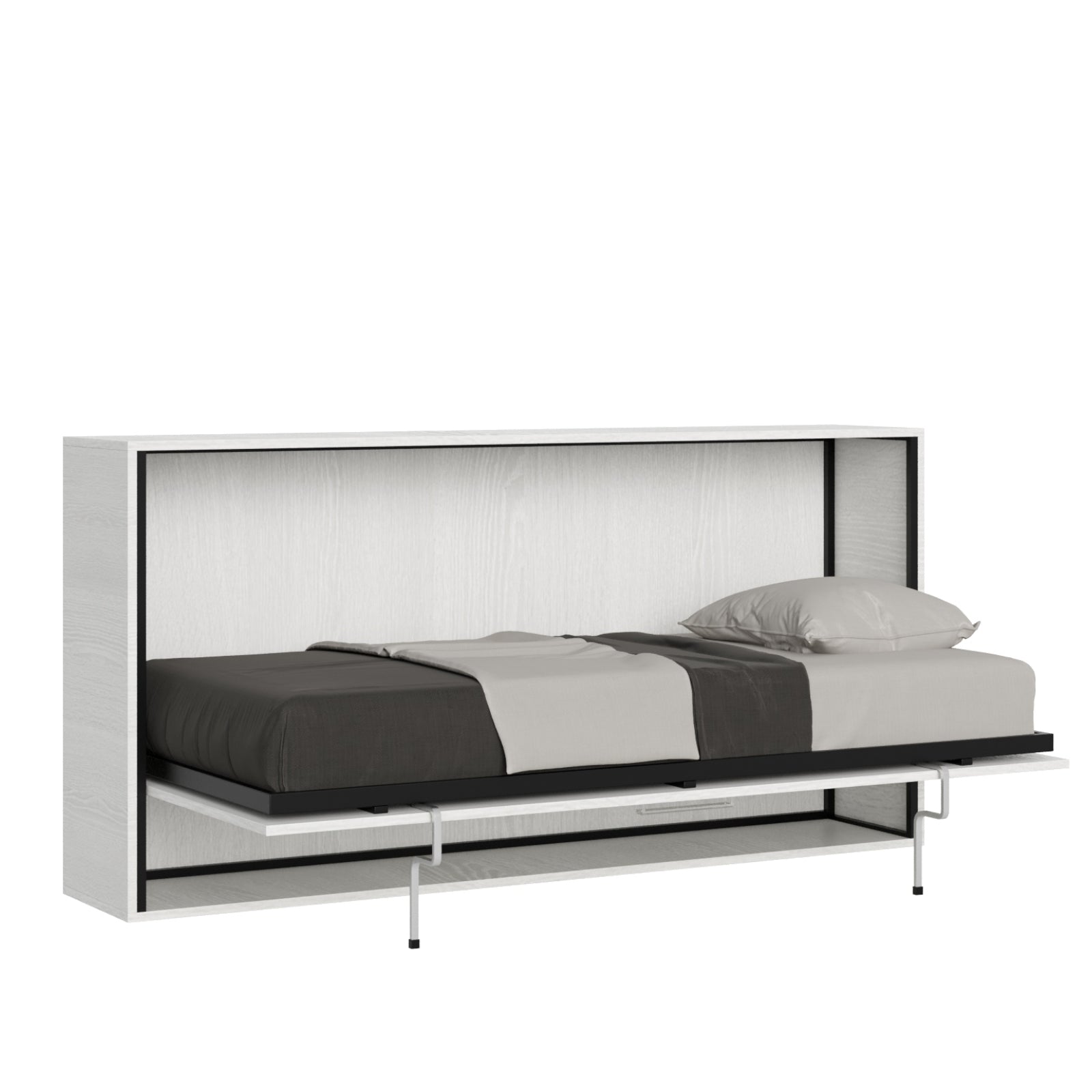 Questo tipo di letto è caratterizzato da un meccanismo di apertura orizzontale che consente di sollevare il letto e riporlo all'interno di una struttura appositamente progettata.