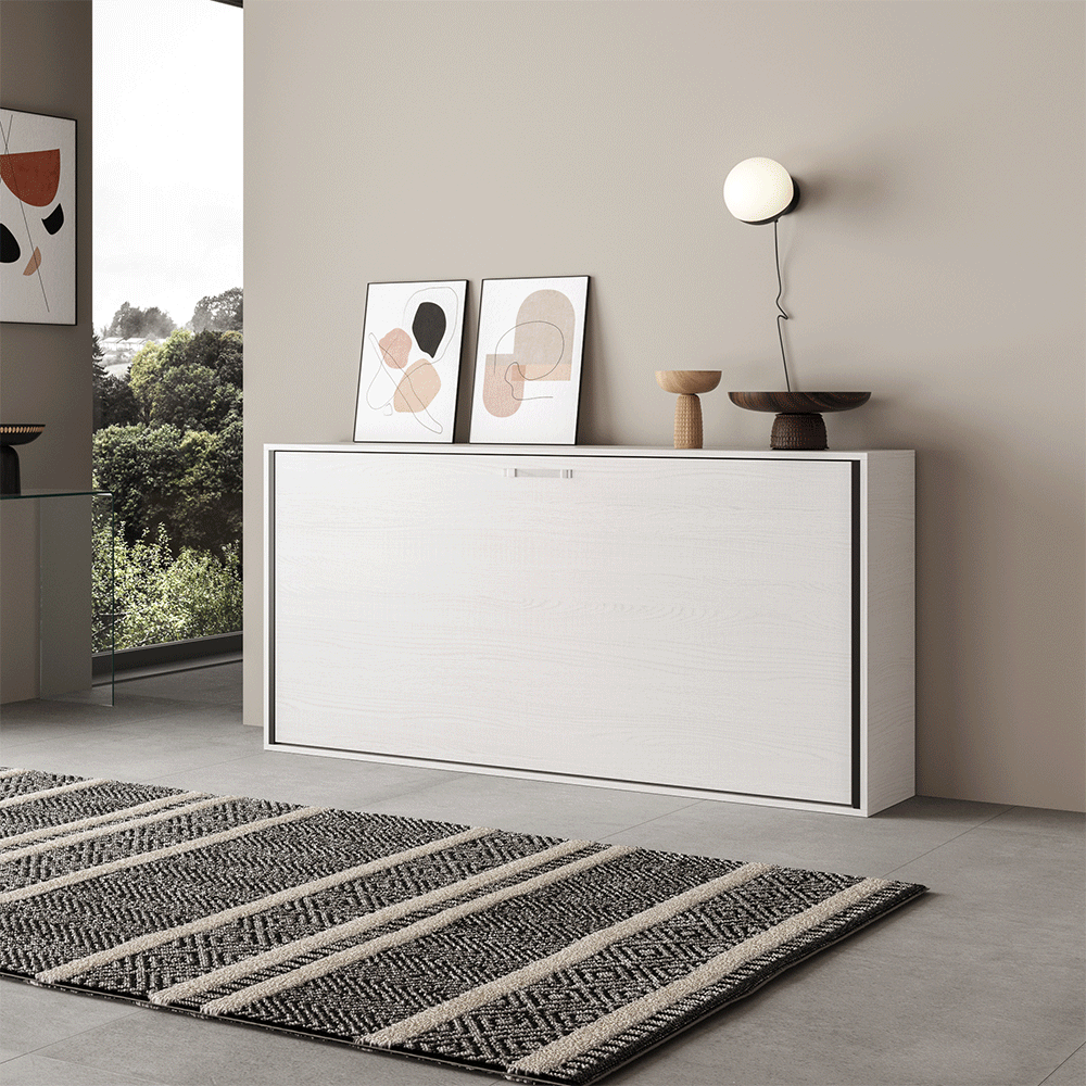 Quando il letto è riposto, la struttura può essere utilizzata come una parete o una superficie di appoggio aggiuntiva, permettendo una maggiore versatilità nell'arredamento della camera da letto.
