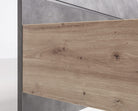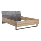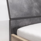 Spicca la sua testiera leggermente inclinata con rivestimento melaminico Grigio effetto cemento e le sue gambe in metallo che si uniscono fornendo stabilità e resistenza.