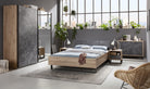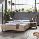 Letto moderno matrimoniale "Lafabrica" struttura in legno rovere e nero con spalliera