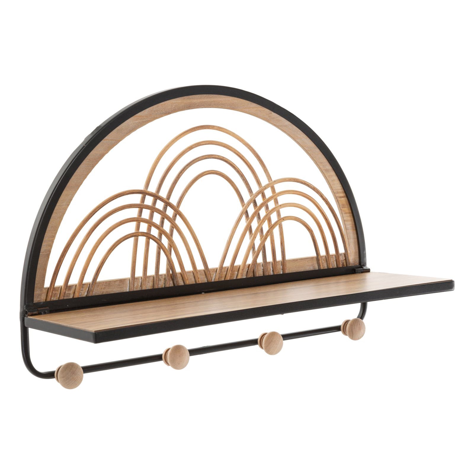 Mensola da parete "Oporto" in legno e rattan con appendiabiti per interni