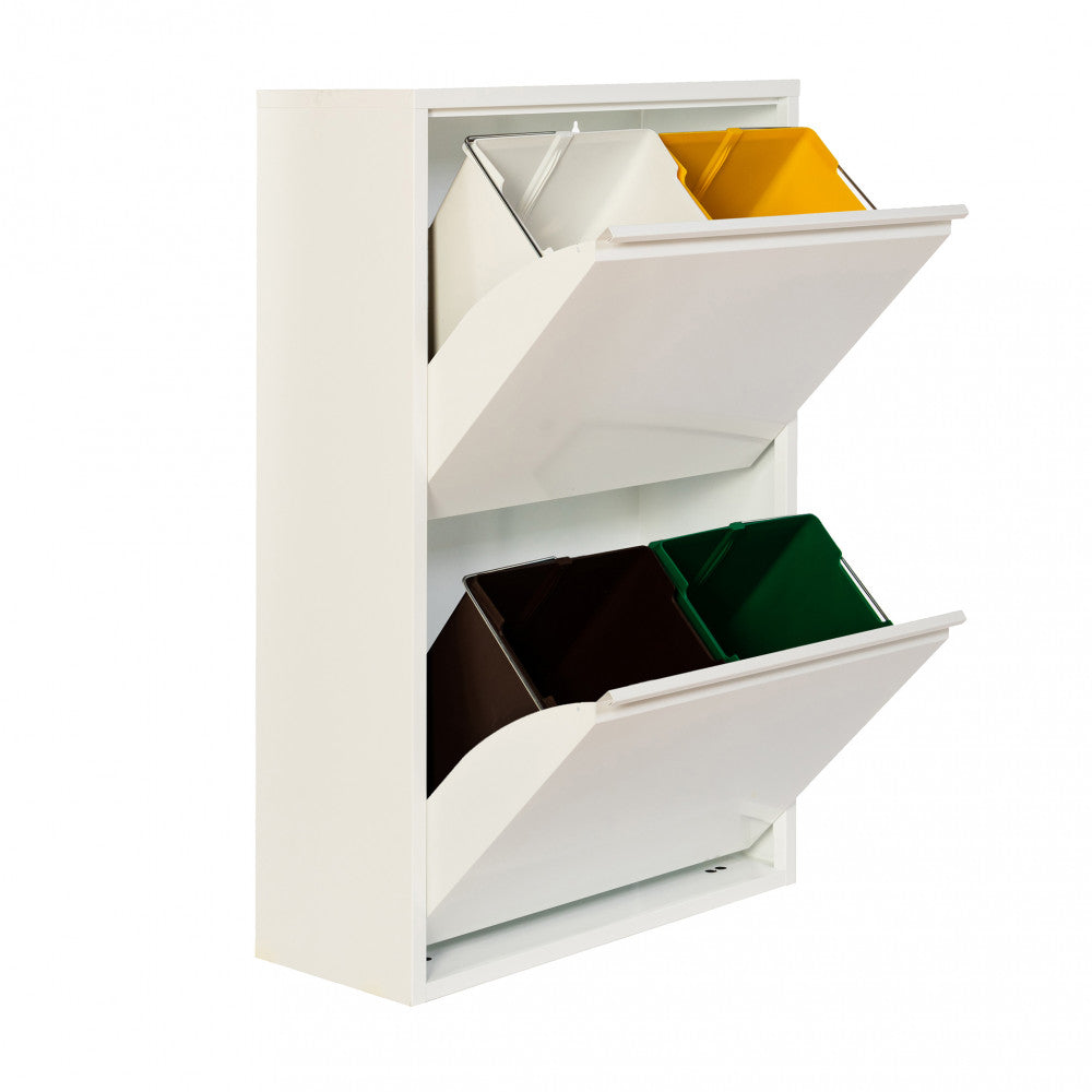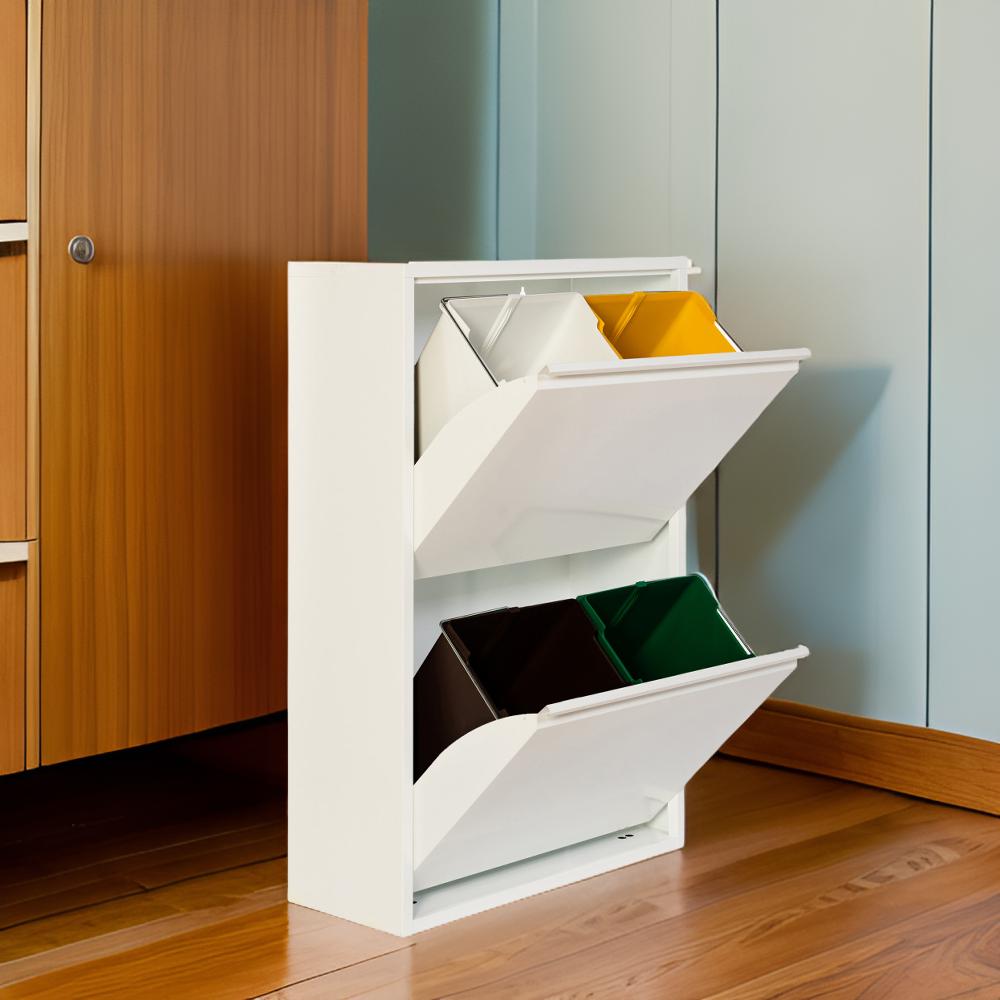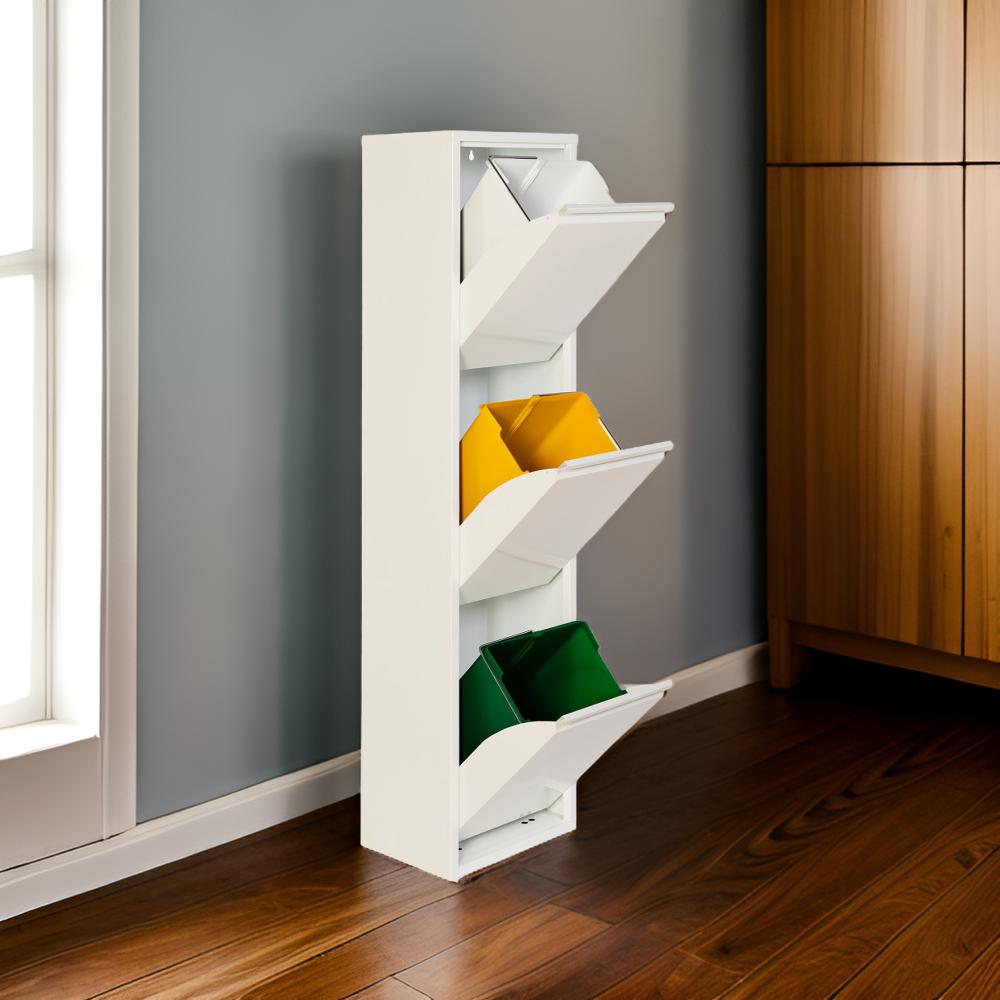 Ottimizza la tua raccolta differenziata con questo pratico mobiletto a 2 ante, dotato di cestini colorati che ti permettono di separare i rifiuti in modo semplice ed efficiente.