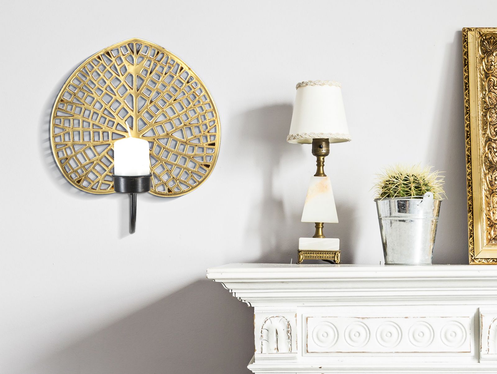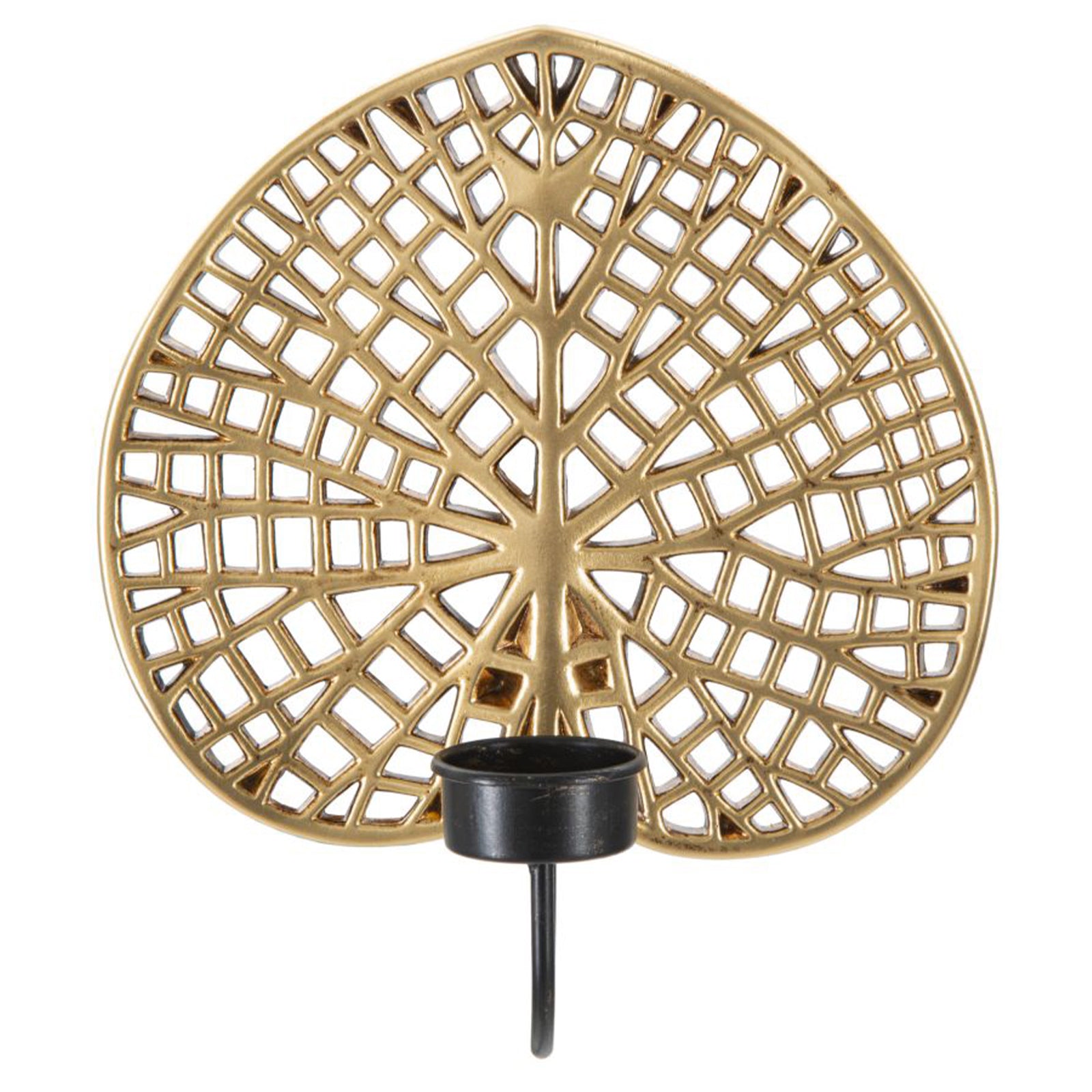 Porta candela da muro foglia struttura in metallo e poliresina per interni